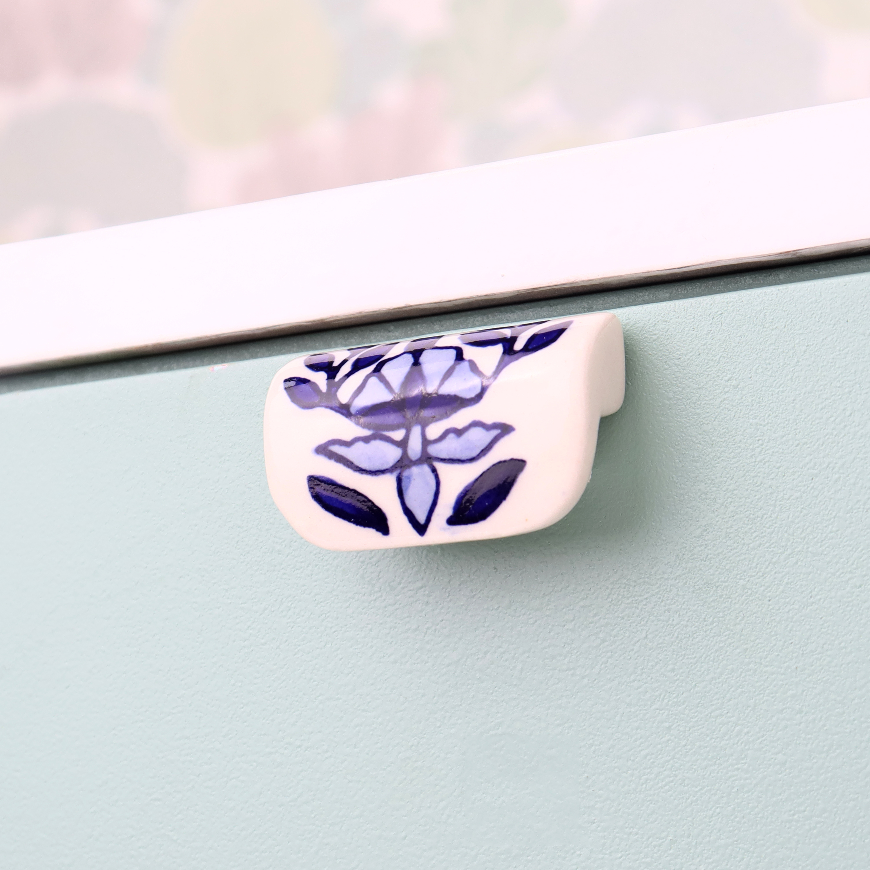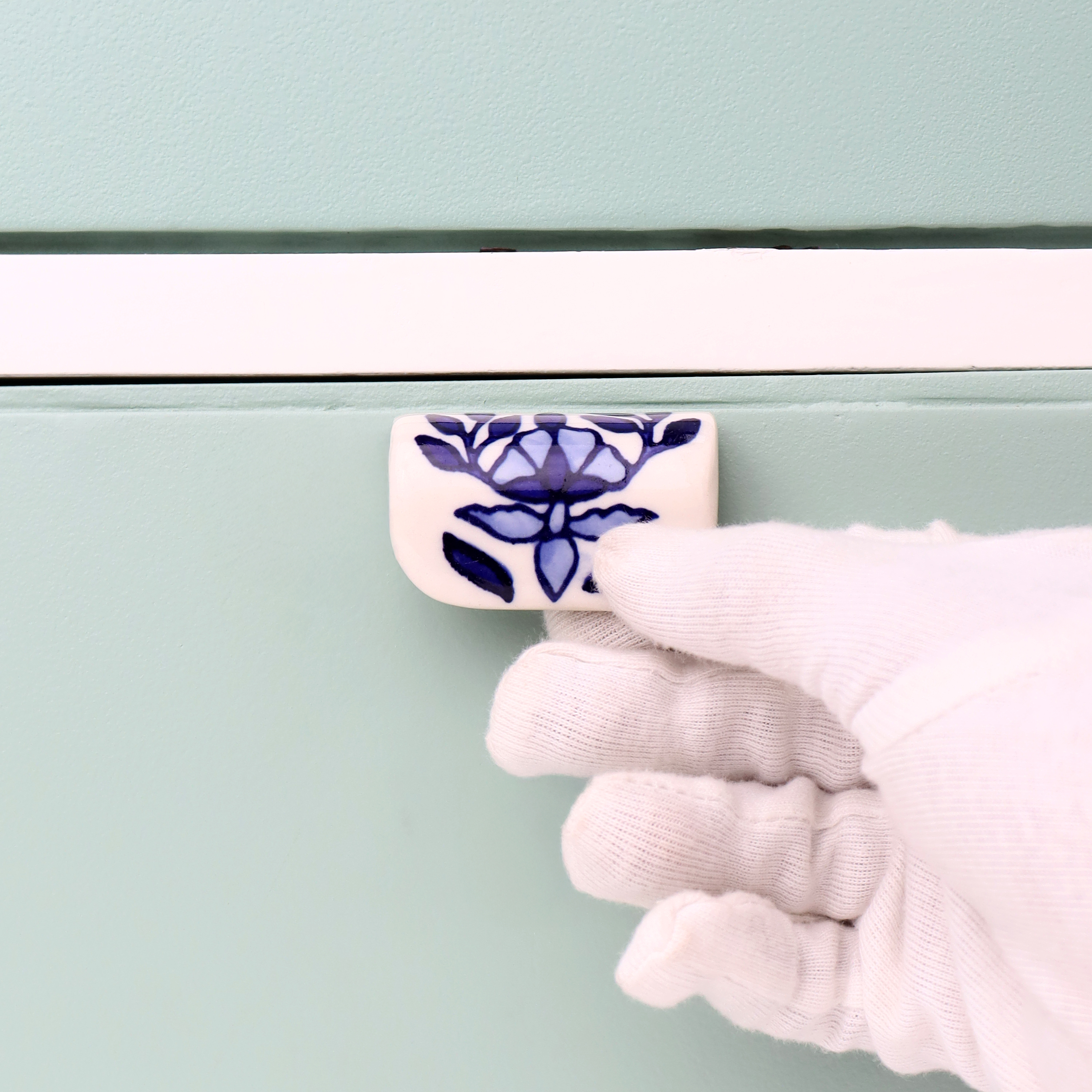 Designed with modern aesthetics in mind, the blue leaf floral pattern combined with the smooth ceramic finish makes this handle a standout addition to any room. Ideal for anyone looking to add a touch of nature-inspired elegance to their kitchen, bathroom, or living room furniture, this drawer handle enhances the visual appeal of cabinets, drawers, and wardrobe doors.