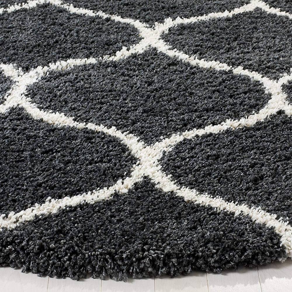 Redefine your home décor with this Dark Grey & Ivory Microfiber Shaggy Carpet, featuring an elegant Moroccan-inspired trellis design. Its plush texture and bold color contrast make it a versatile choice for living rooms, bedrooms, and lounges. Packed & quality-checked by Indianshelf.