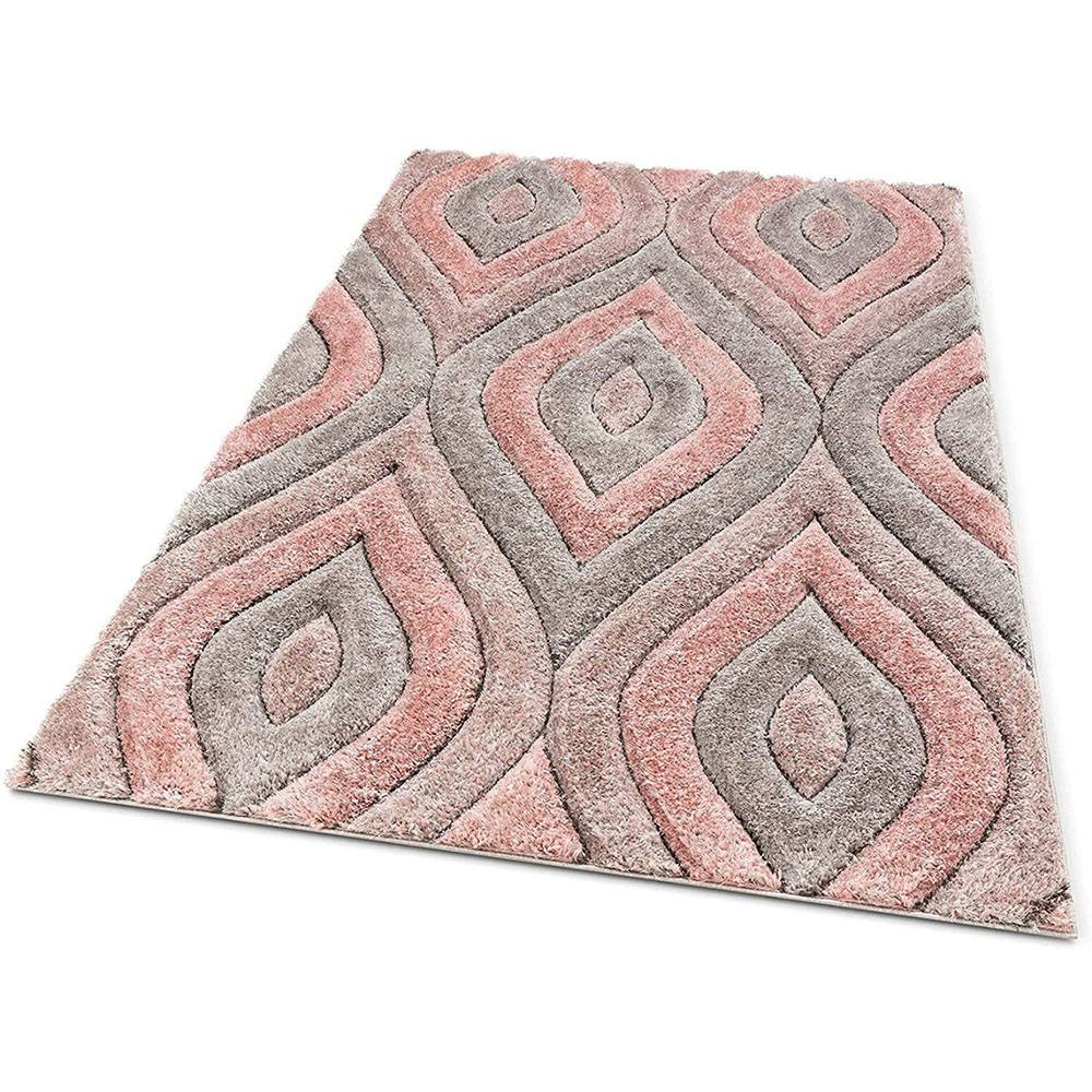 This handmade multicolor polyester rug features a modern diamond pattern in elegant shades of blush pink and grey. Soft underfoot and visually appealing, it adds warmth and style to any space. Packed & quality-checked by Indianshelf.