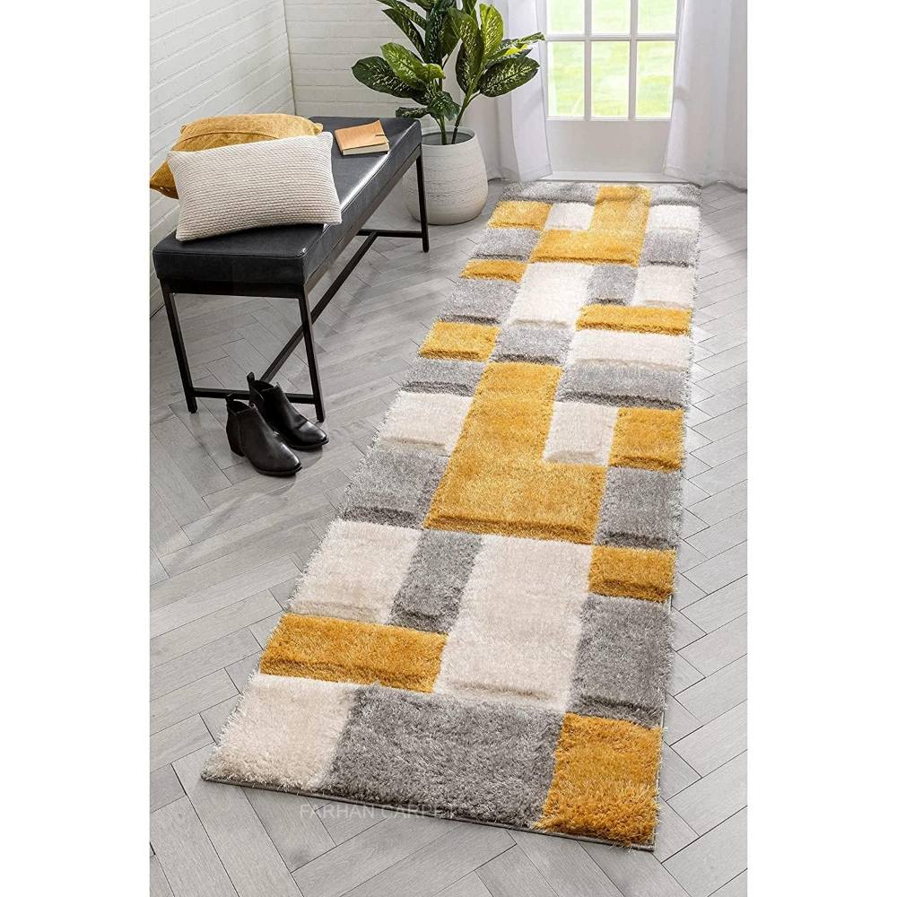 • Modern gold Geometric Hall Rug