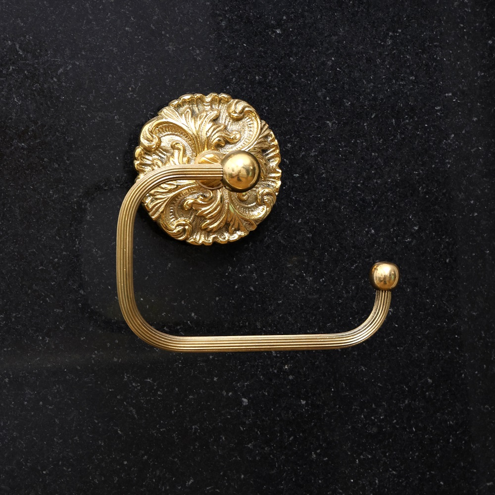 Add an instant touch of classic elegance to your bathroom decor with the Golden Brass Toilet Paper Holder. This high quality solid brass holder features an eye catching golden finish that radiates timeless sophistication. Give your bathroom a stylish facelift with this beautiful brass toilet paper holder. The rich golden color and ornate scrollwork design provide a striking visual accent that complements both modern and traditional decor. The heavy solid brass construction ensures this holder will maintain its brilliant shine for years of daily use. Keep your essential bathroom necessities neatly organized and easily accessible with just a touch of classic style. This elegant brass toilet paper holder is perfect for anyone looking to add a touch of timeless glamor to their bathroom. The high end details and materials make this an impressive accessory to impress your guests. Upgrade your bathroom decor today with this charming golden accent piece.