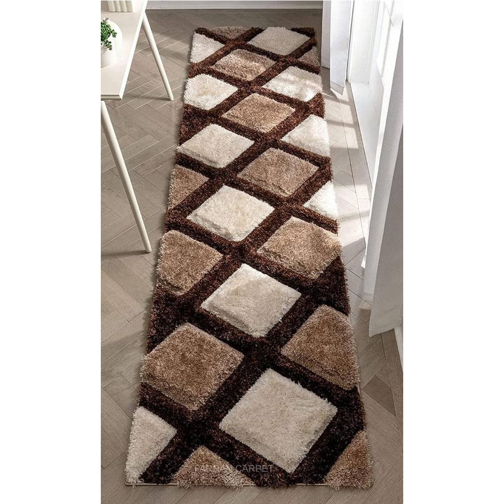 Add sophistication to your interiors with this Brown, Beige & Cream Polyester Carpet. Its geometric diamond pattern enhances modern living rooms, bedrooms, or lounge spaces with both comfort and style. Crafted with a plush finish, it balances durability with a refined aesthetic. Packed & quality-checked by Indianshelf.