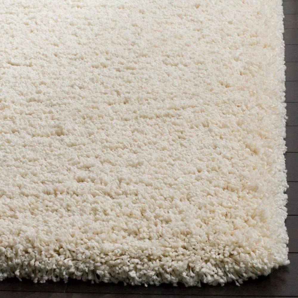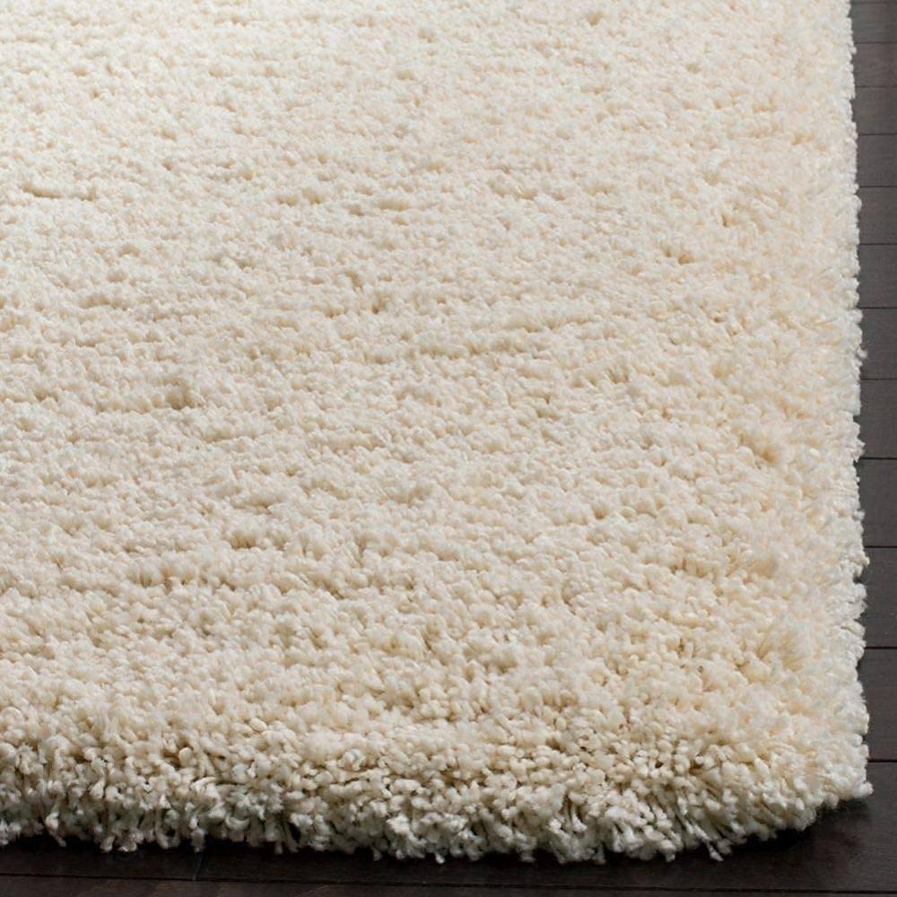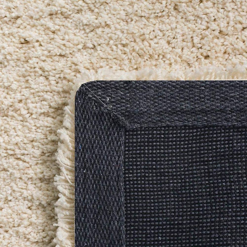 This rug offers a plush feel underfoot with a calming ivory tone, creating a serene and inviting ambiance.
