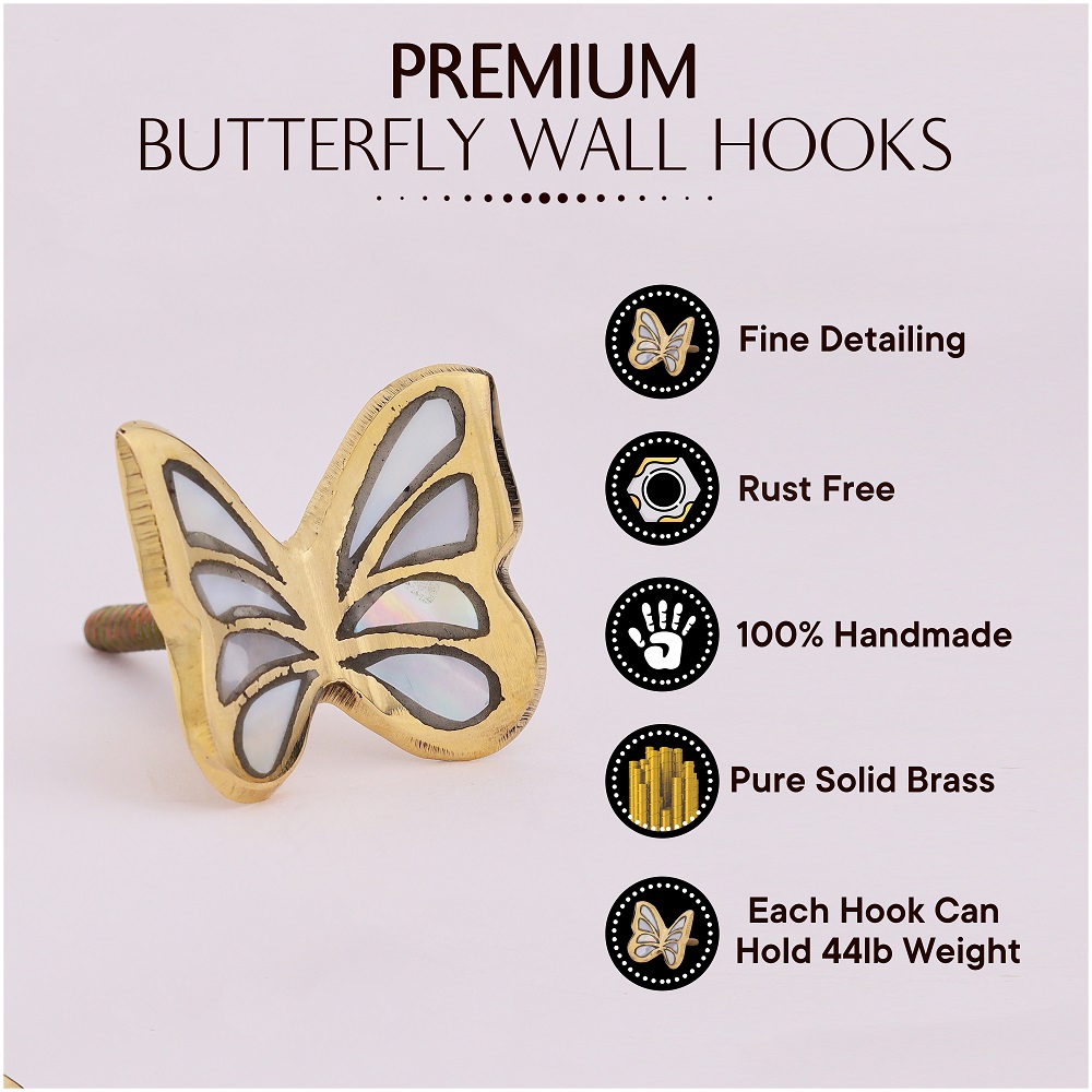Bring a sense of ethereal beauty to your home with our captivating Butterfly Wall Hook. Meticulously crafted from premium mother of pearl and brass, this exquisite piece seamlessly blends form and function. The delicate butterfly silhouette adds a touch of elegance, while the robust hook provides reliable storage for your everyday essentials. Whether you're looking to enhance your entryway, bedroom, or bathroom, this versatile wall hook effortlessly elevates your space. Hang coats, bags, towels, or scarves with ease, all while enjoying the enchanting ambiance it creates. With its high-quality construction and timeless aesthetic, the Butterfly Wall Hook is a must-have accessory that will elevate your décor for years to come.