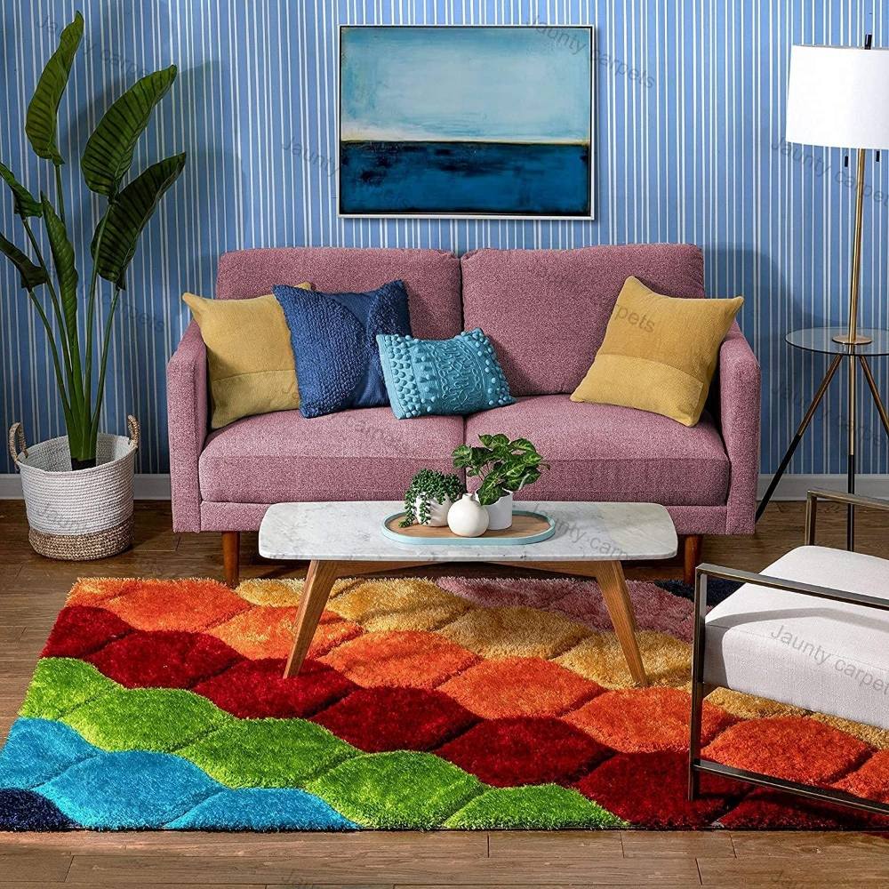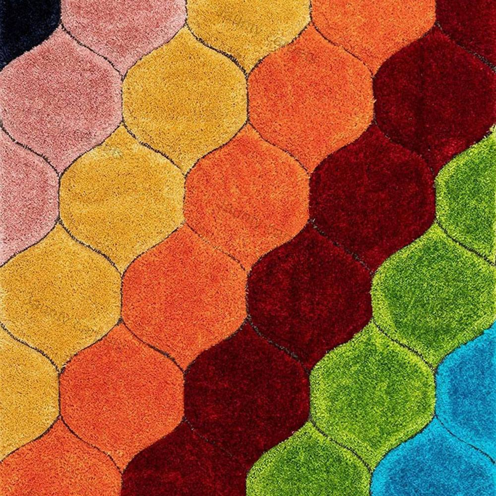 Infuse your space with color and creativity using this Multicolor polyester shaggy rug. Designed with a vibrant honeycomb pattern, it brings joyful energy and plush comfort to living rooms, lounges, or artistic spaces. Packed & quality-checked by Indianshelf.