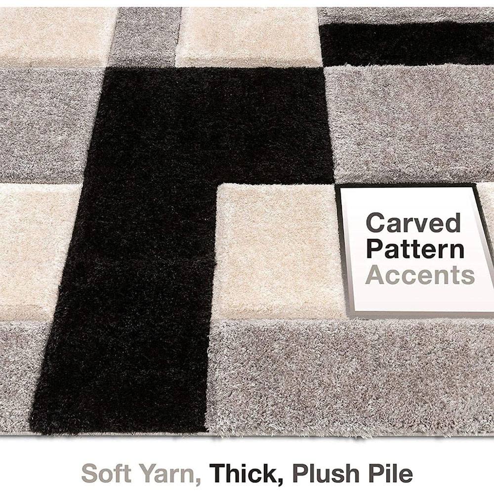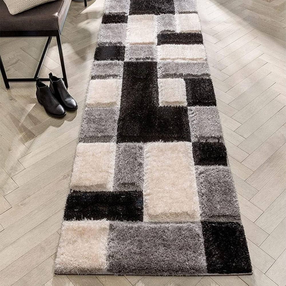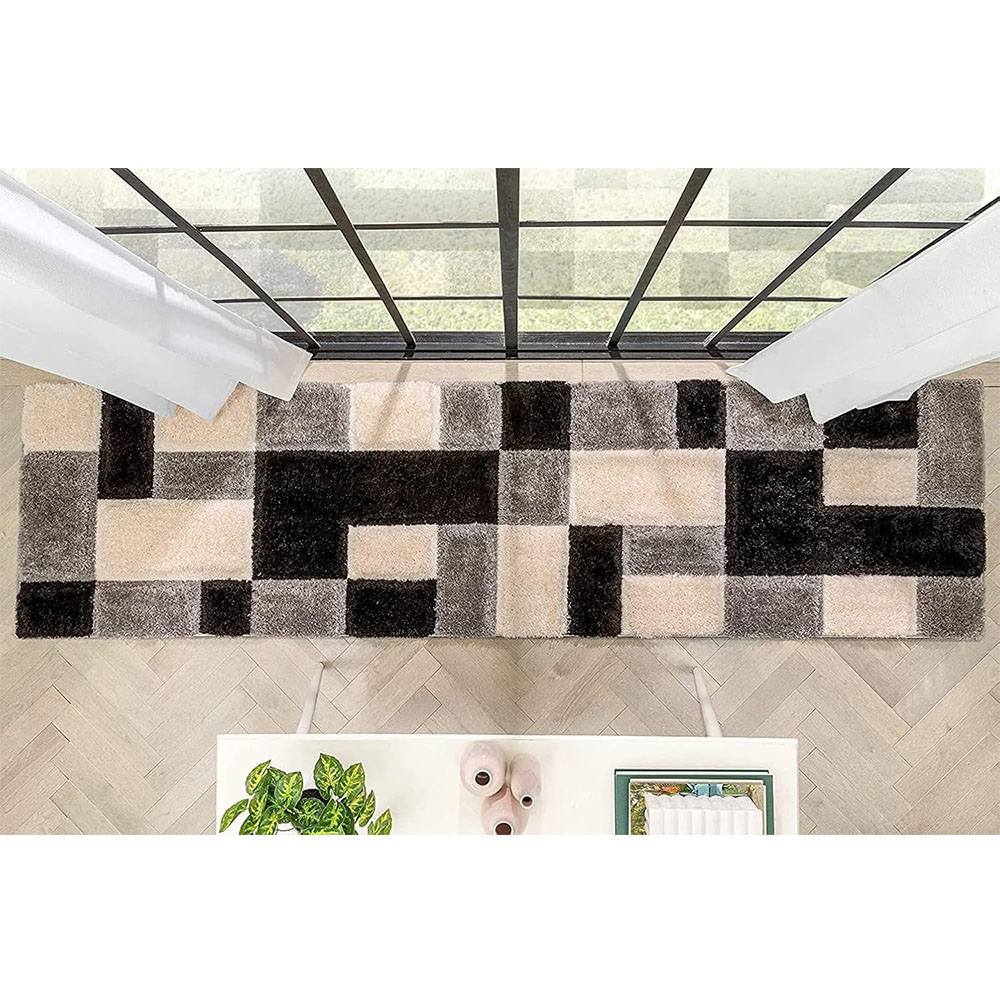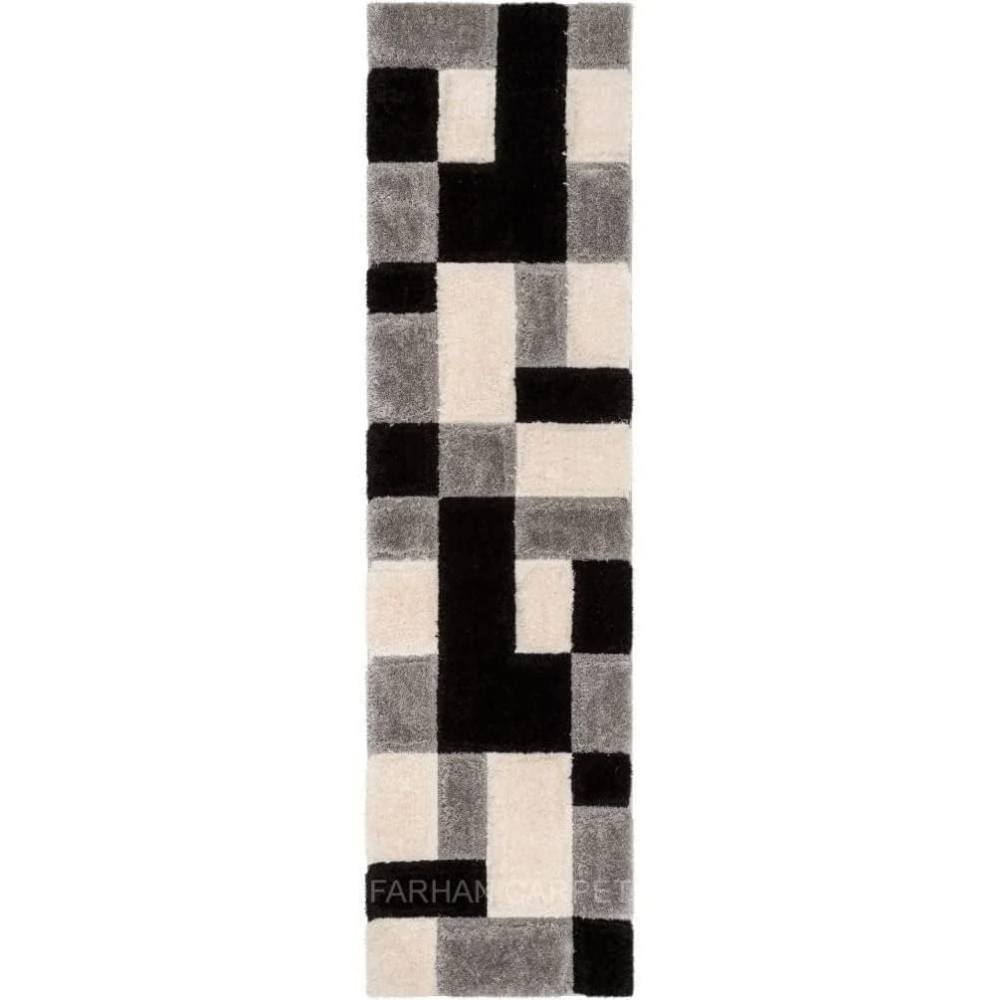 This handmade multicolor polyester rug features a striking checkered pattern in shades of black, grey, and ivory. Its modern block design adds sophistication and structure to any interior while offering unmatched softness and comfort. Packed & quality-checked by Indianshelf.