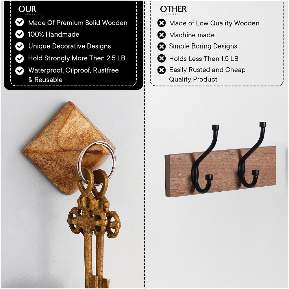 Despite its simple form, this wooden hook can support daily essentials like keys, hats, or towels with ease – perfect for light-to-medium loads.