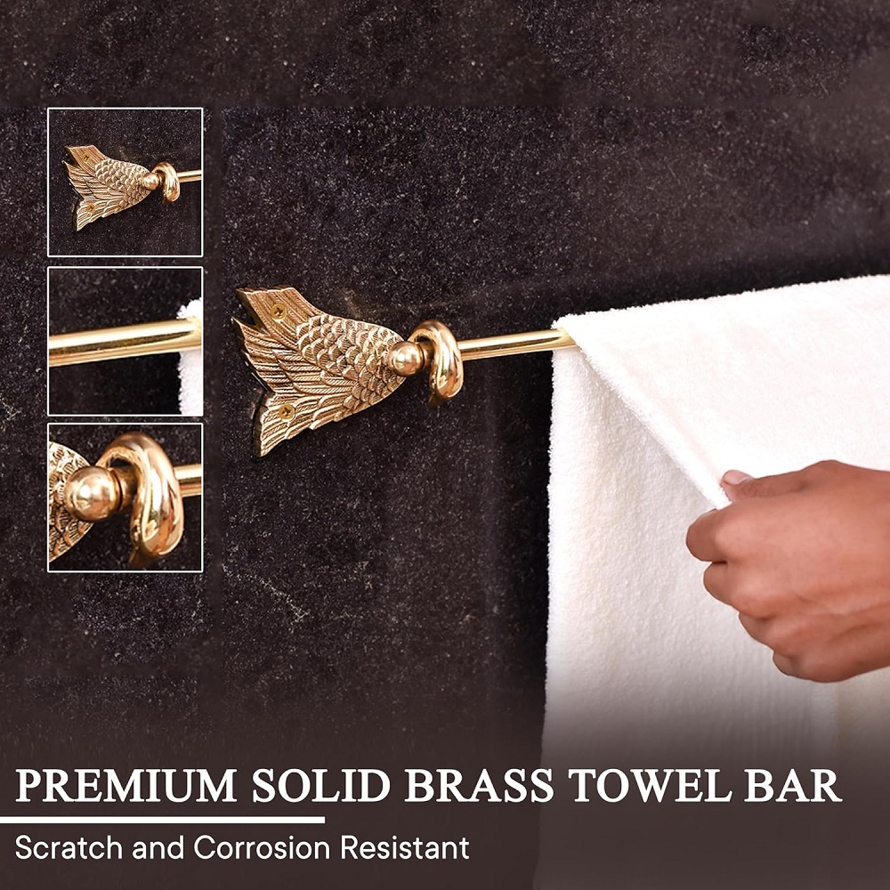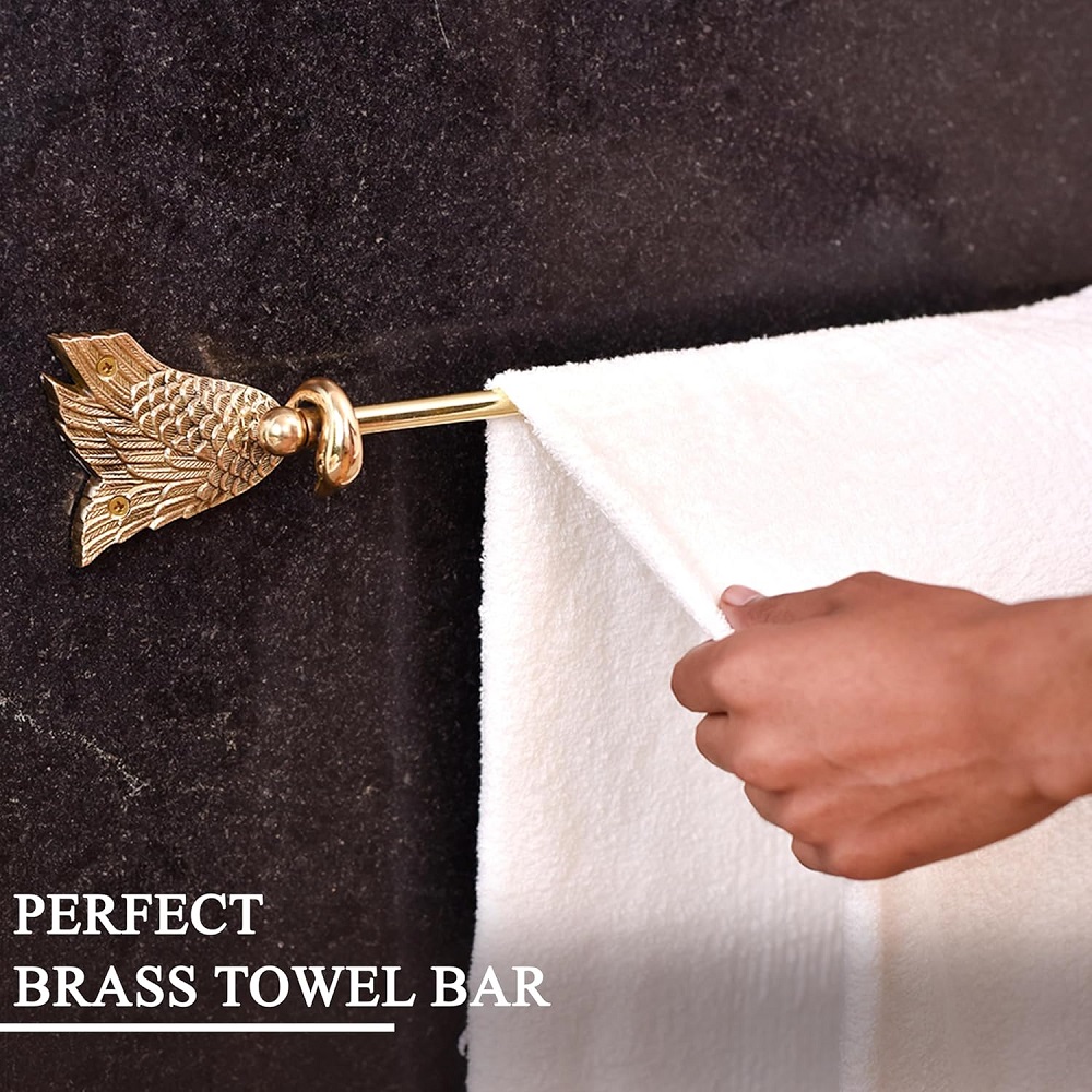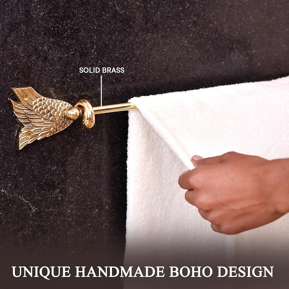 Buy a Brass Swan Towel Hanger online that is a perfect blend of elegance and functionality. This towel bar boasts a graceful swan design, meticulously crafted by skilled Indian artisans with a passion for precision. Each piece is lovingly handmade from premium-quality brass, ensuring durability and a timeless aesthetic. The golden finish adds a touch of opulence to your modern bathroom, transforming it into a luxurious space. The radiant hue not only complements contemporary interiors but also stands out as a statement piece in any setting, be it your home, hotel, or office. The intricate details of the swan design showcase the artisan’s dedication to their craft, making each hanger a unique work of art. Versatile and practical, this brass towel hanger is designed to enhance your daily routine while adding a touch of sophistication to your surroundings. Its sturdy construction ensures reliable performance, providing a stylish and functional solution for organizing towels in a chic manner. Moreover, this Brass Swan Towel Hanger makes for an exceptional gift choice for your loved ones on special or festive occasions, celebrating the artistry and cultural richness of Indian craftsmanship.
