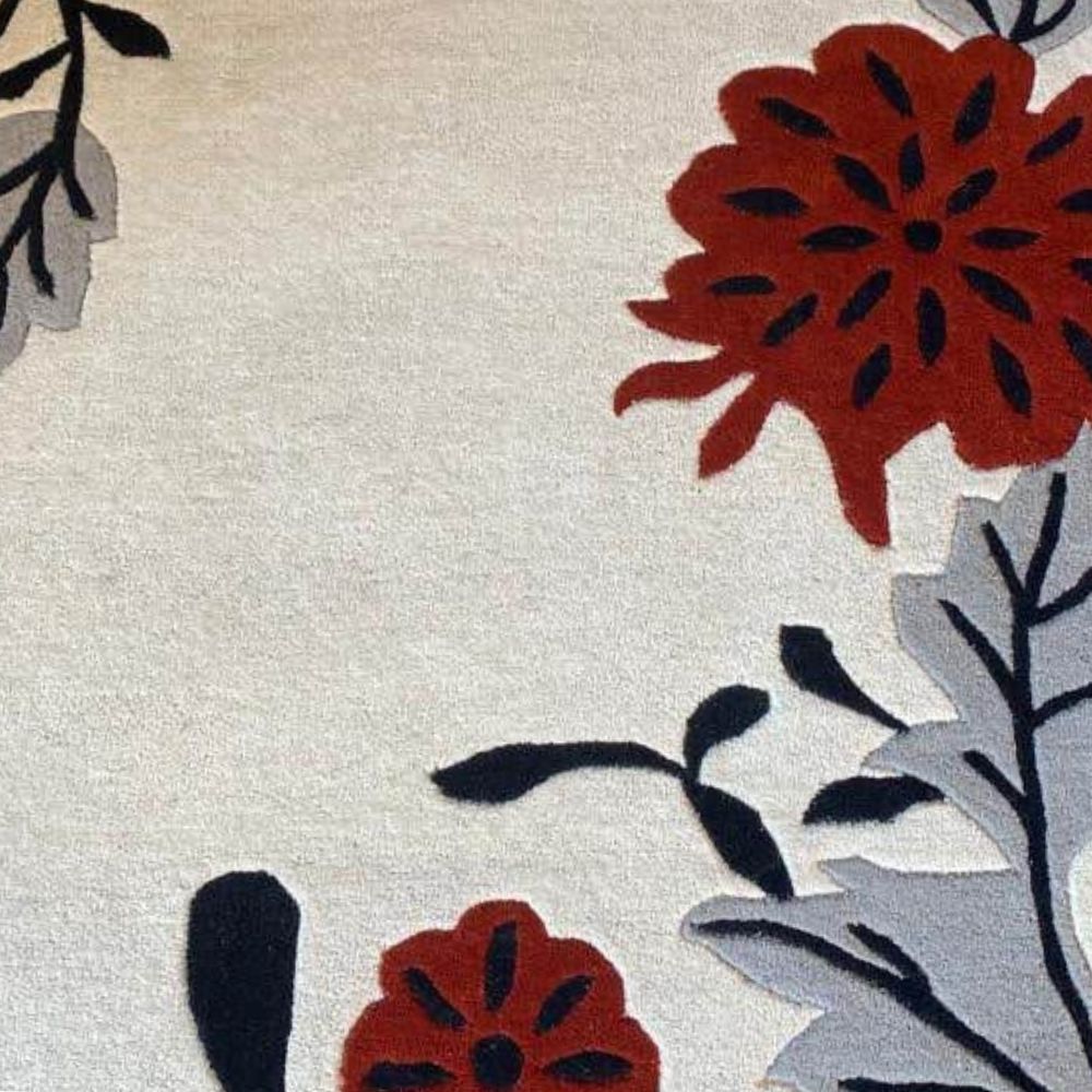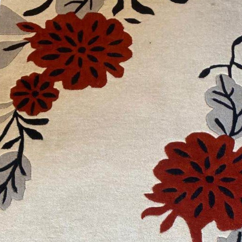 Bring a touch of elegance and artistic charm to your home with this hand-tufted wool floral rug, featuring bold red blossoms and graceful grey-black foliage on a warm beige backdrop. Designed to add both comfort and style, this rug blends timeless floral artistry with the plush texture of hand-tufted wool, making it a versatile piece for modern and traditional interiors alike. Color Palette This rugs beauty lies in its well-balanced and striking palette: Beige Base: A neutral, calming backdrop that enhances the designs clarity. Deep Red Flowers: The focal point of the rug, offering warmth and vibrance. Charcoal Black Accents: Adds definition, outlining petals and stems with bold contrast. Soft Grey Leaves: A cool-toned complement to the red flowers, lending balance and sophistication. This palette is perfect for interiors that value a mix of modern minimalism and natural vibrancy. Design & Pattern Theme: Oversized floral blossoms surrounded by leafy stems. Pattern: Large-scale flowers that stand out against the light ground. Effect: A bold yet graceful visual centerpiece for any room. Best Suited For: Living rooms, bedrooms, dining spaces, or offices.