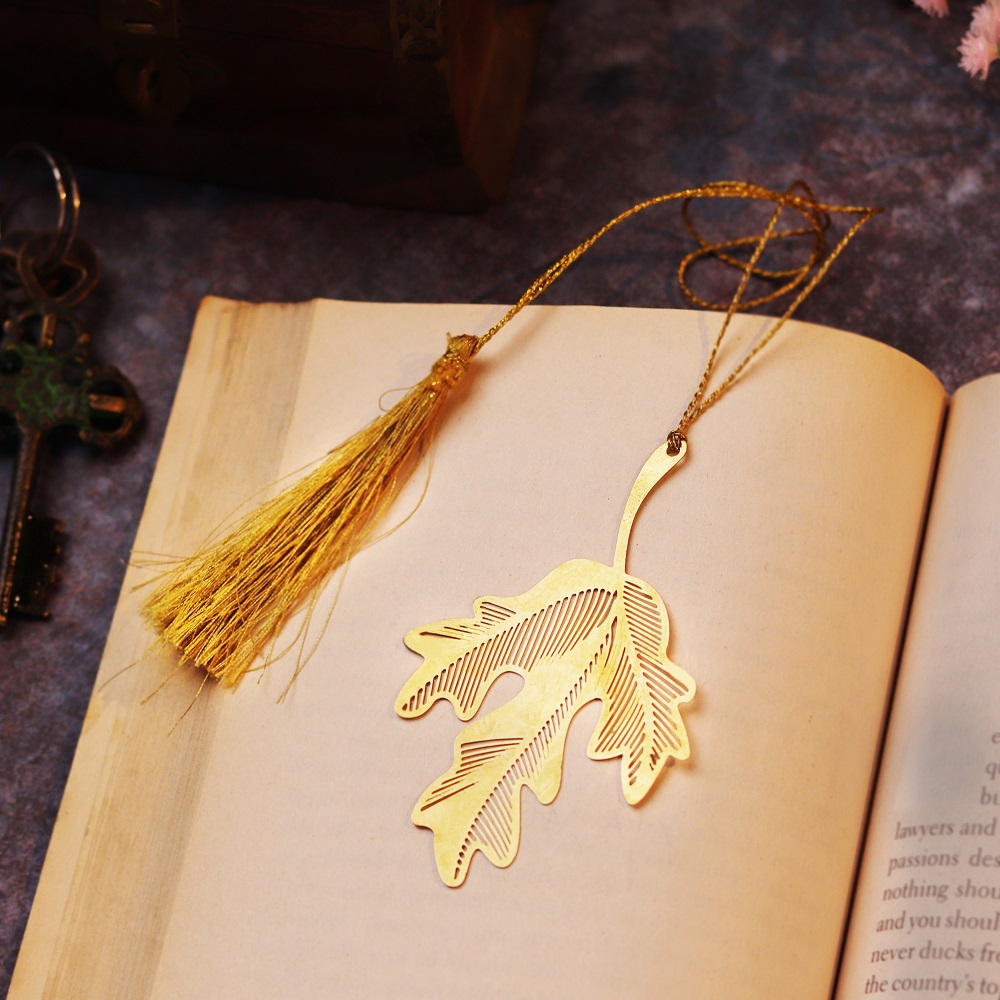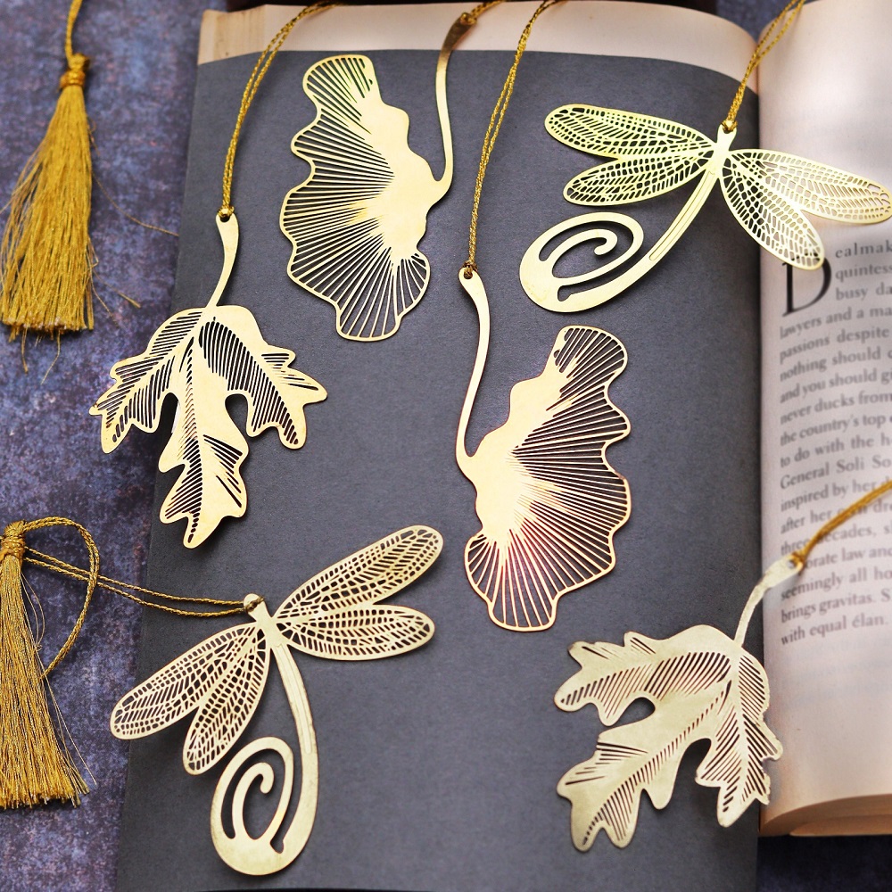 A pack of 6 brass bookmarks that is the perfect gift for any book lover. Crafted in a shiny golden colour, these bookmarks are sure to add a touch of elegance to any reading experience. One of the bookmarks is designed in a unique leaf shape, while the other is designed in a beautiful flower shape, adding a natural touch to your reading collection. Both bookmarks also feature a thread that can be used to secure them in place within a book, ensuring you never lose your page again. These bookmarks make for an excellent gift for friends, family, or relatives who love to read. They come in a pack of two, so you can keep one for yourself and gift the other to a loved one. Made of durable brass, these bookmarks are designed to last, ensuring they will be a cherished addition to any book collection for years to come. The shiny golden colour adds a touch of luxury to your reading experience, making these bookmarks a must-have for any book lover.