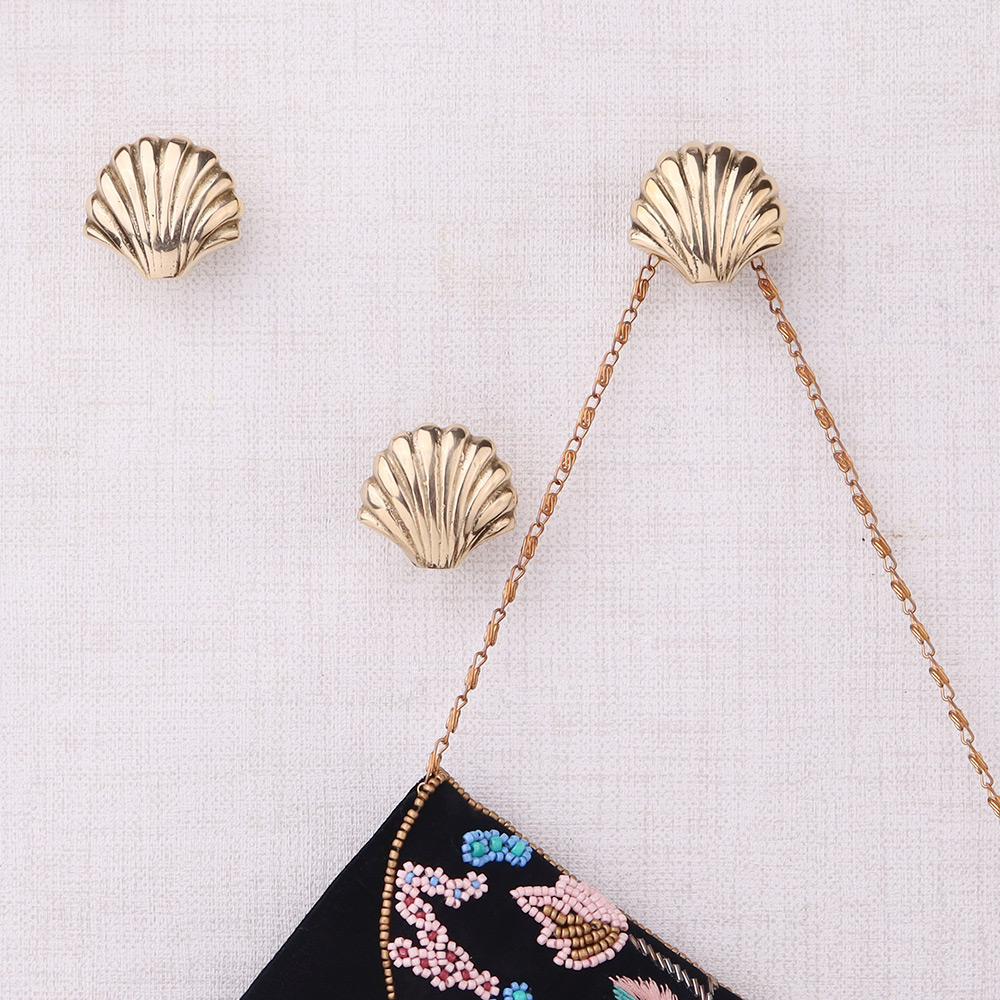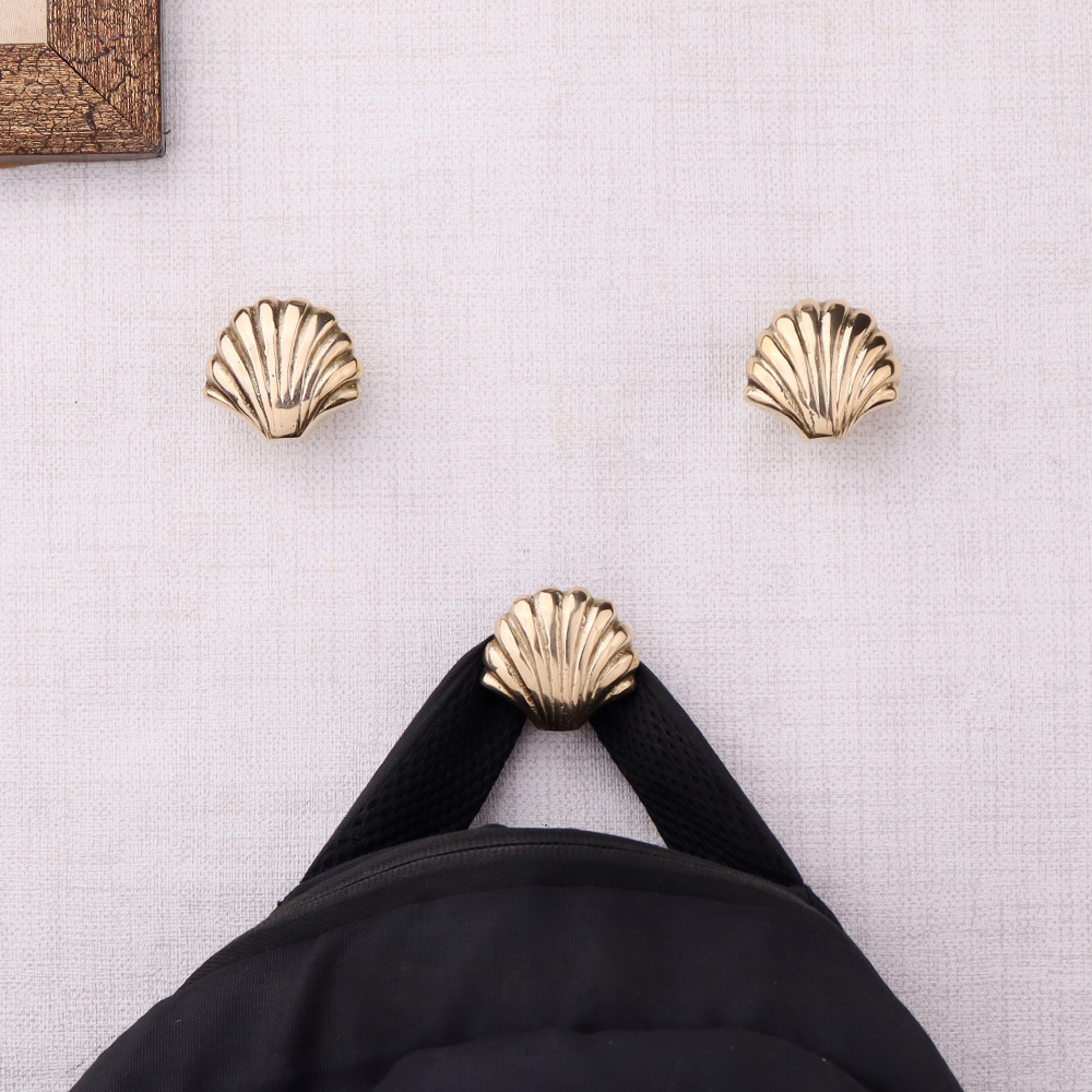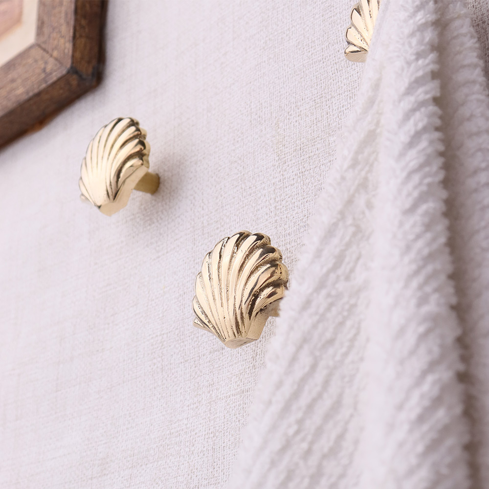 Modern Solid Golden Shell Brass Wall Hooks-Pack of 3