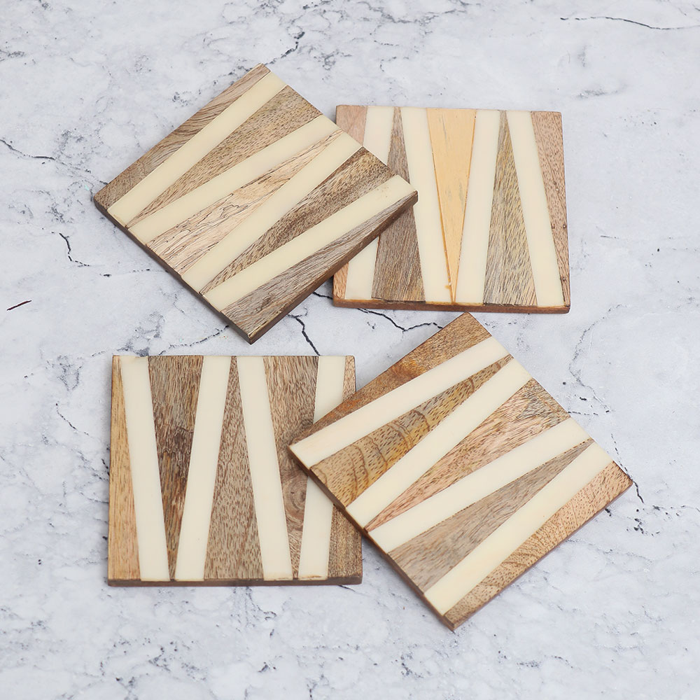 This Handmade Wooden Coaster Set is crafted by professional Indian artisans using high-quality wood. This Pack of four square-shaped coasters is a testament to fine craftsmanship and attention to detail. Each coaster features an antique brown finish, lending it a timeless appeal that seamlessly blends with any decor. These Wooden Coasters serve a practical purpose while also adding a touch of elegance to your home or office. Designed to hold water, tea, juice, or coffee glasses, they effectively protect your surfaces from stains and spills. Whether it\'s in your living room, office desk, restaurant, hotel, or cafe, these coasters provide a functional solution with a touch of sophistication. Furthermore, our Wooden Coaster Set makes for a thoughtful gift for your loved fours on special or festive occasions. The combination of quality materials, skilled craftsmanship, and versatile functionality ensures that this coaster set will be cherished and appreciated.