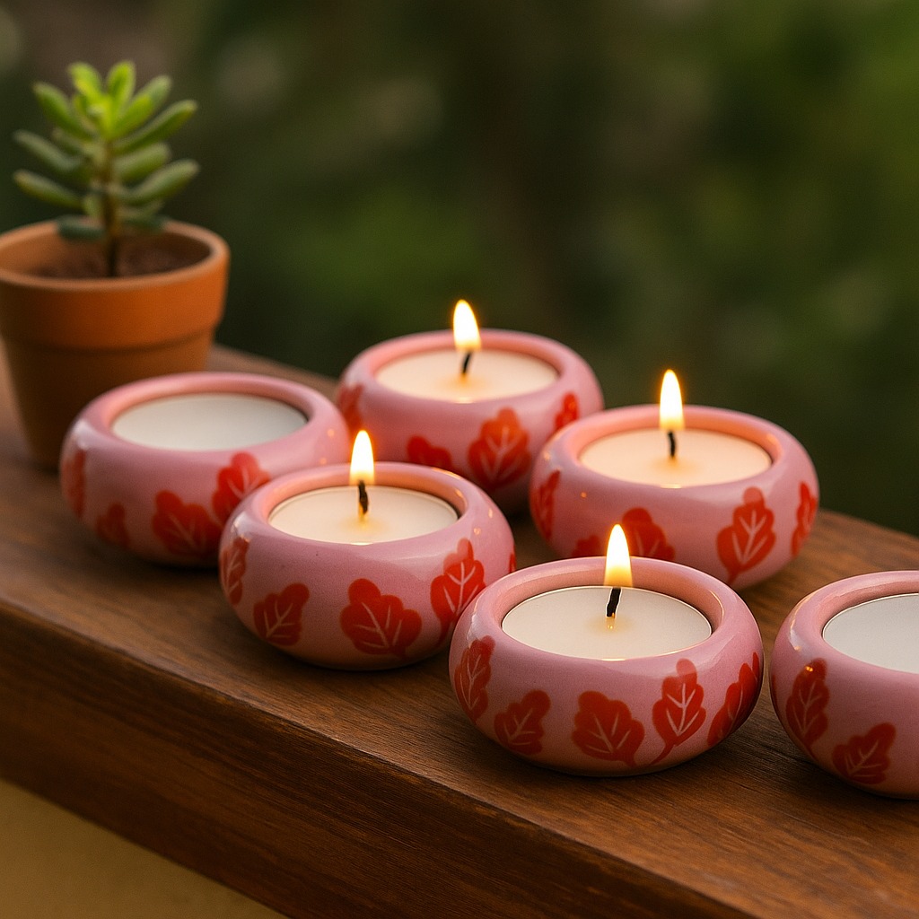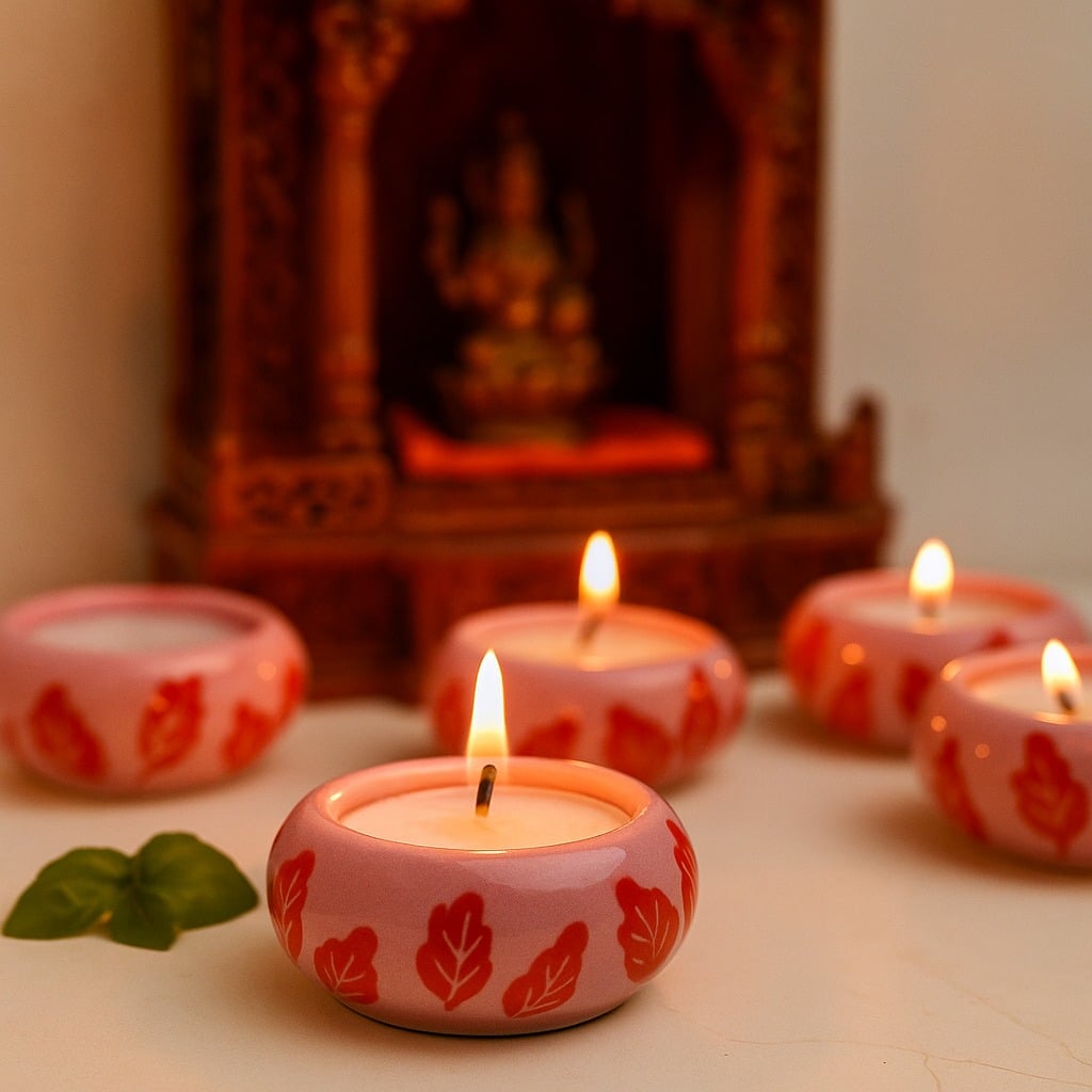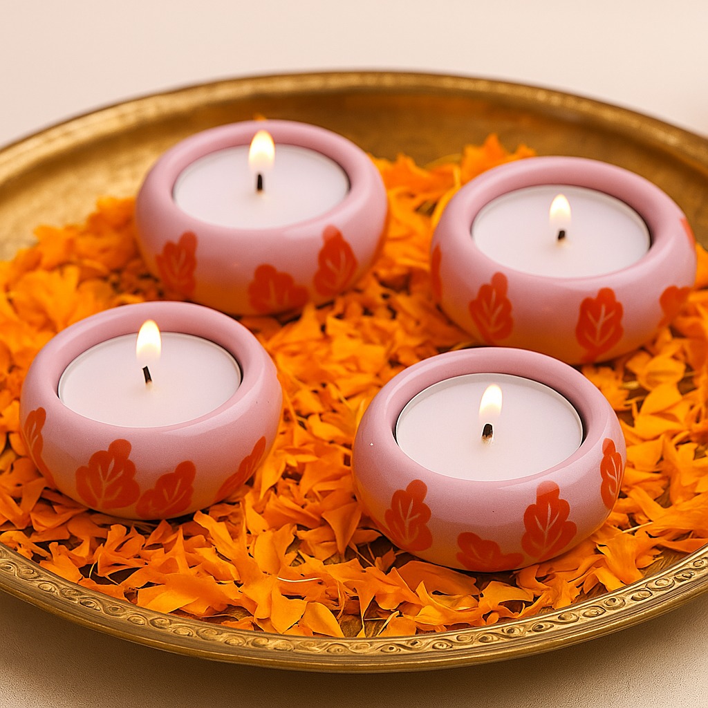 Enhance your home decor with our exquisite set of 4 ceramic tea light holders that is meticulously crafted by highly skilled and experienced Indian artisans. Made from high-quality ceramic, each piece is a testament to the beauty of craftsmanship. The unique blend of white and blue colours gracing different intricate patterns on each holder adds a touch of elegance to any space. Tea light holders have long been cherished for their ability to infuse warmth and coziness into any setting. Whether adorning your home, restaurant, cafe, shop, or hotel, these holders cast a mesmerizing glow that captivates both the eye and heart. Perfect for accentuating special occasions, they create a magical atmosphere for cherished moments with your loved ones. Handpick these holders as thoughtful gifts for your dear ones, enhancing their celebrations on special, festive, or auspicious occasions. Experience the ethereal dance of flickering candlelight that these holders offer, making every occasion an unforgettable memory.