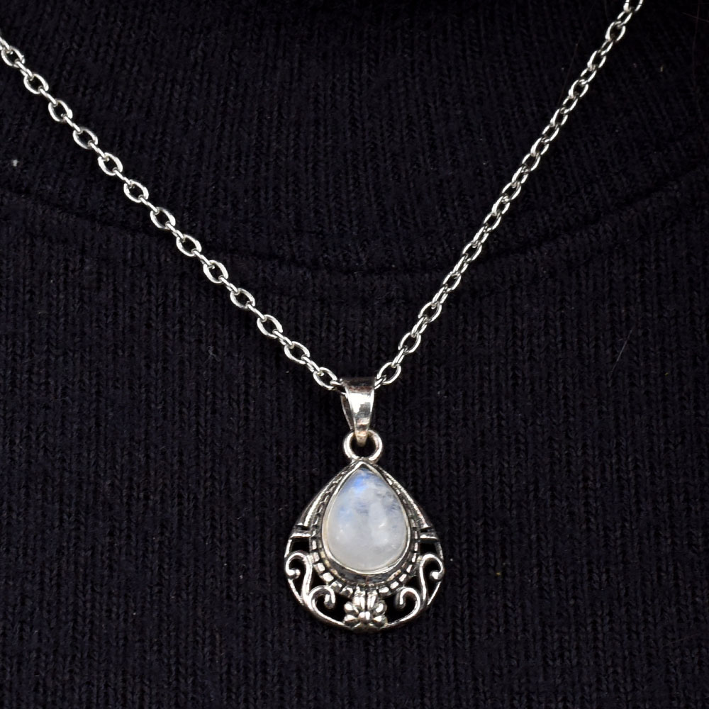 Moonstone Teardrop Engraved 92.5 Sterling Silver Pendant Jewelry Suitable for Any Season these pure silver pendant would make a great birthday gift, anniversary gift, mother's day gift, valentine's day gift, Christmas gift, wedding gift.