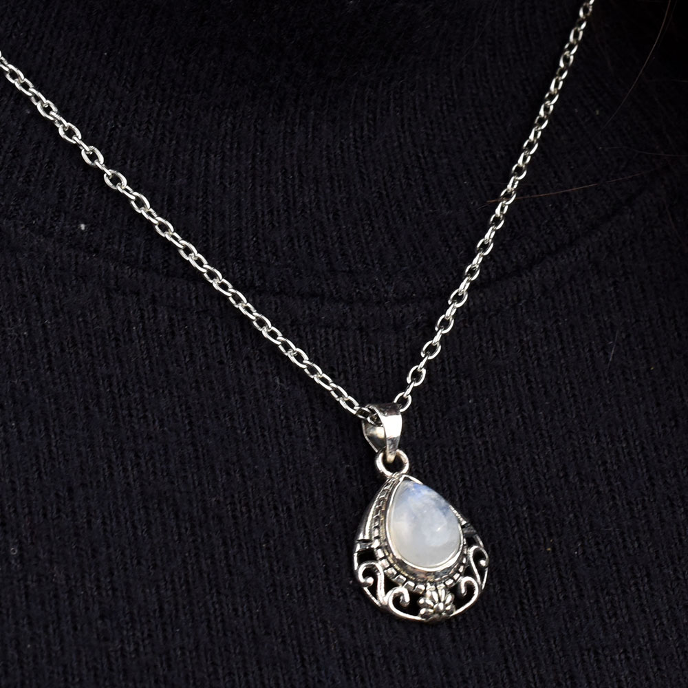 • Moonstone Teardrop Engraved 92.5 Sterling Silver Pendant Jewelry