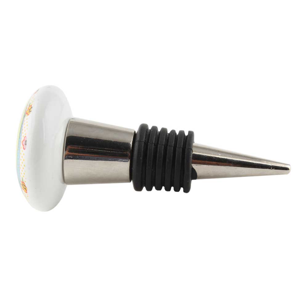 Morning Tree Flat Ceramic Wine Bottle Stopper. Zinc Alloy Wine Bottle Stopper with Attractive Jute Bag Packaging.