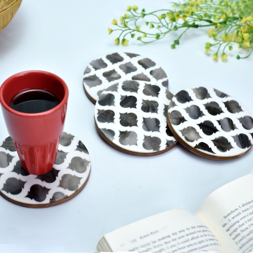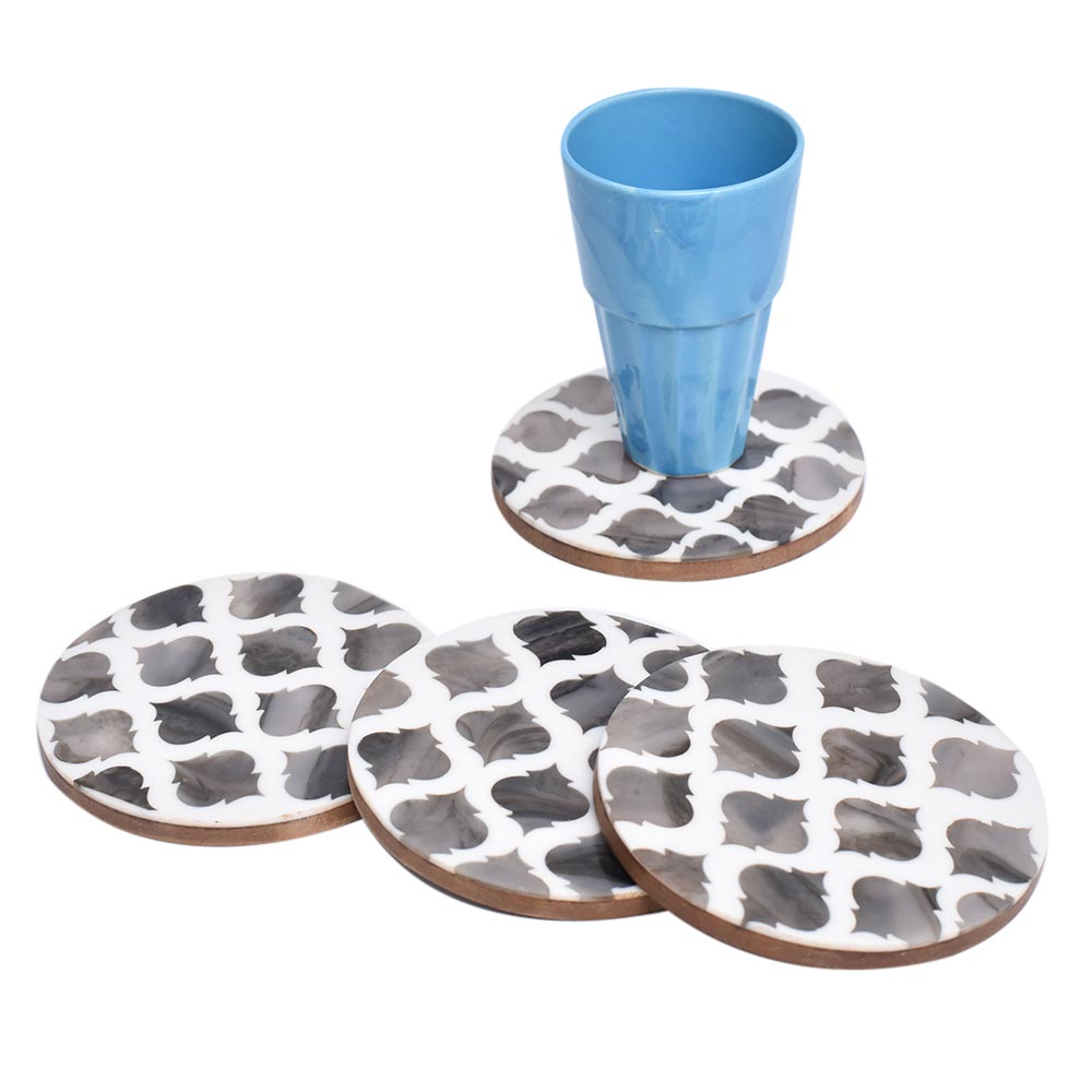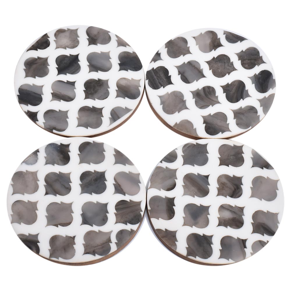Moroccan Art Grey And White Wood And Resin Coaster Set Of 4