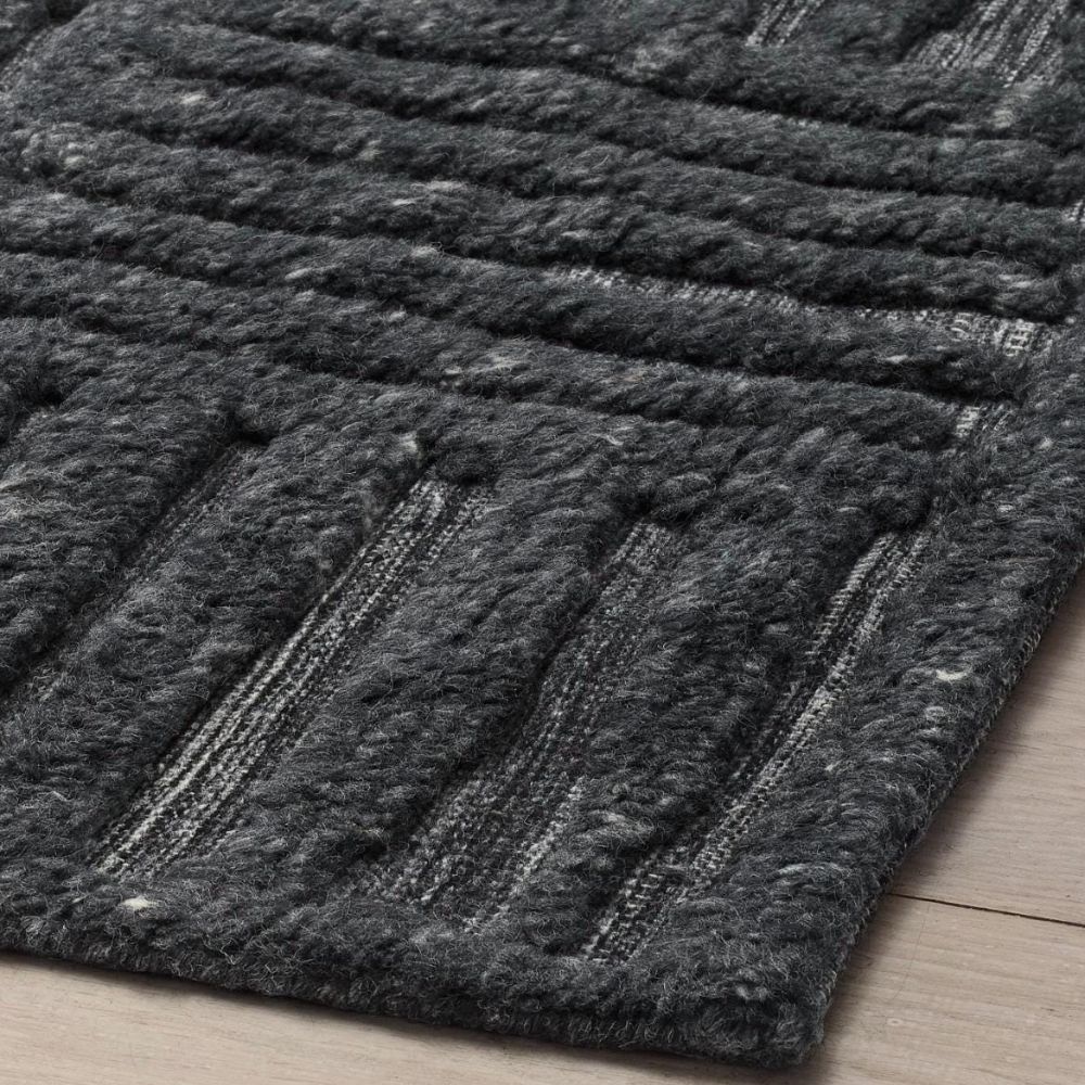 Bring bold elegance into your interiors with the Moroccan Design Handmade Wool Rug. Showcasing a charcoal black geometric texture, this rug is crafted with precision using a blend of cotton and wool. Its minimalist yet impactful design adds depth and sophistication, making it a perfect fit for both contemporary and modern homes.
