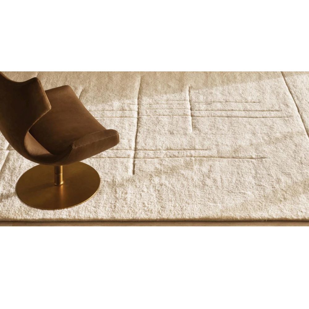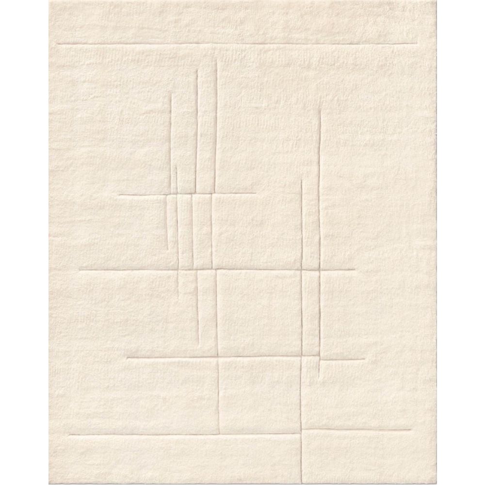 • Hand knotted Moroccan rug with minimal linear geometric accents