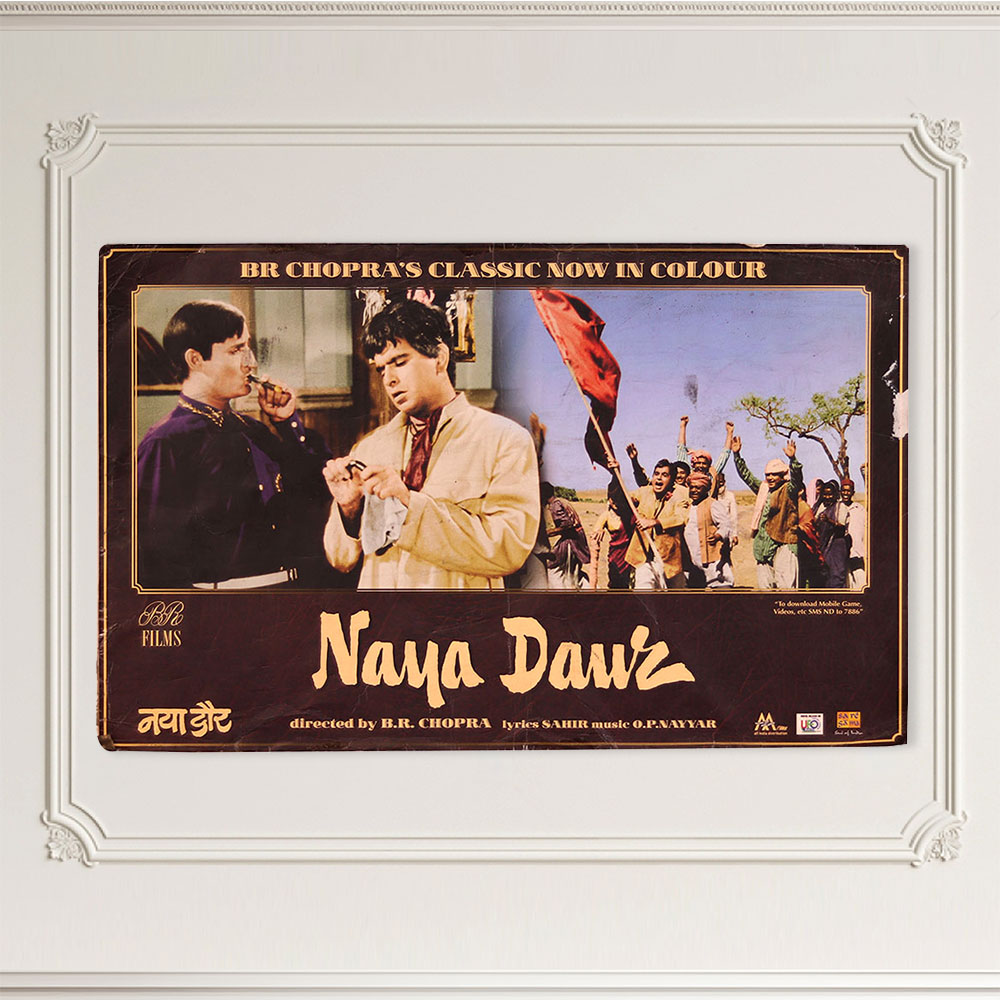 Bring the golden age of Bollywood into your home with this stunning vintage Naya Daur movie print. Immortalize the magic of this classic film on your walls and let it transport you to a bygone era of cinematic splendor. This Naya Daur movie print is a work of art that celebrates the timeless charm of Hindi cinema. Directed by the legendary B.R. Chopra, the film is a cinematic masterpiece that explores the conflict between tradition and modernity in a rapidly changing India. The stunning visuals and unforgettable performances have cemented Naya Daur's place as a true classic. Bring this iconic piece of Bollywood history into your home and let it inspire you daily. Whether you're a film buff, art enthusiast, or simply someone who appreciates the beauty of the past, this vintage Naya Daur movie print is a must-have addition to your space. Elevate your decor and immerse yourself in the magic of vintage Indian cinema every time you gaze upon this captivating work of art.