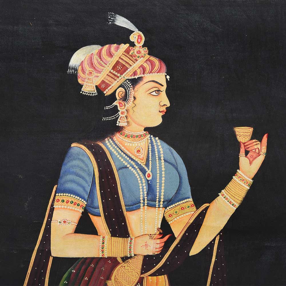 Mughal Canvas Painting Of A Ravishing Princess Holding A Rose