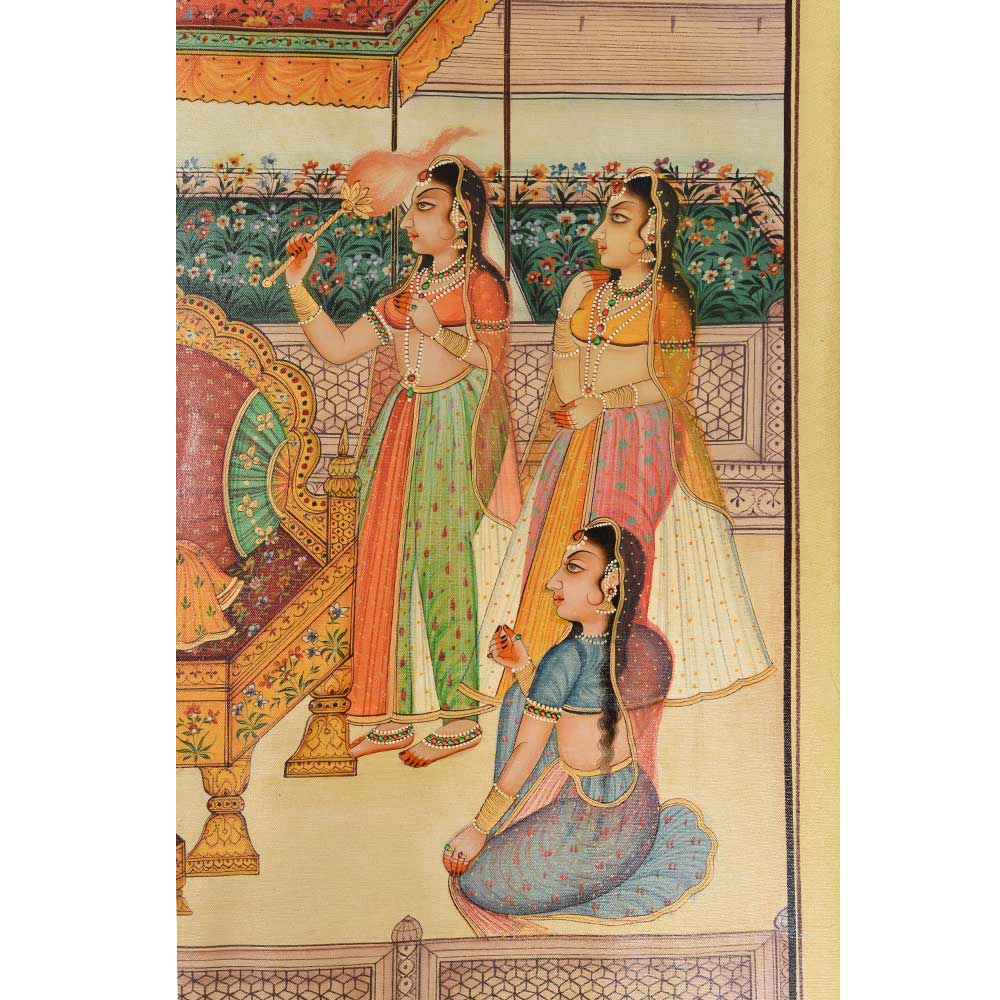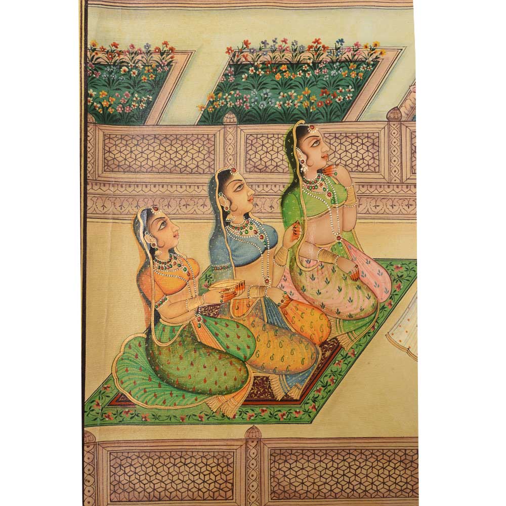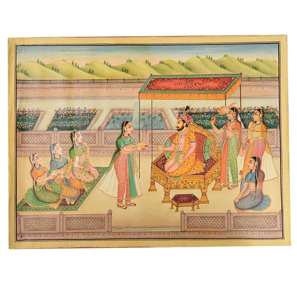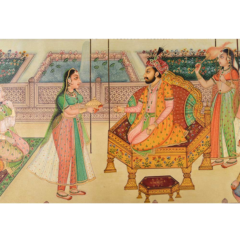 Mughal Canvas Painting Of Jahangir In His Court Surrounded By Court Ladies