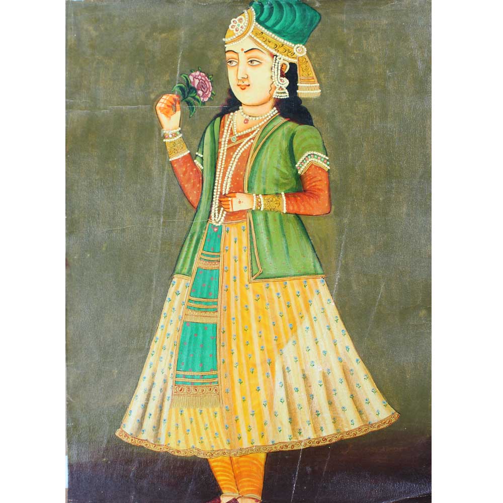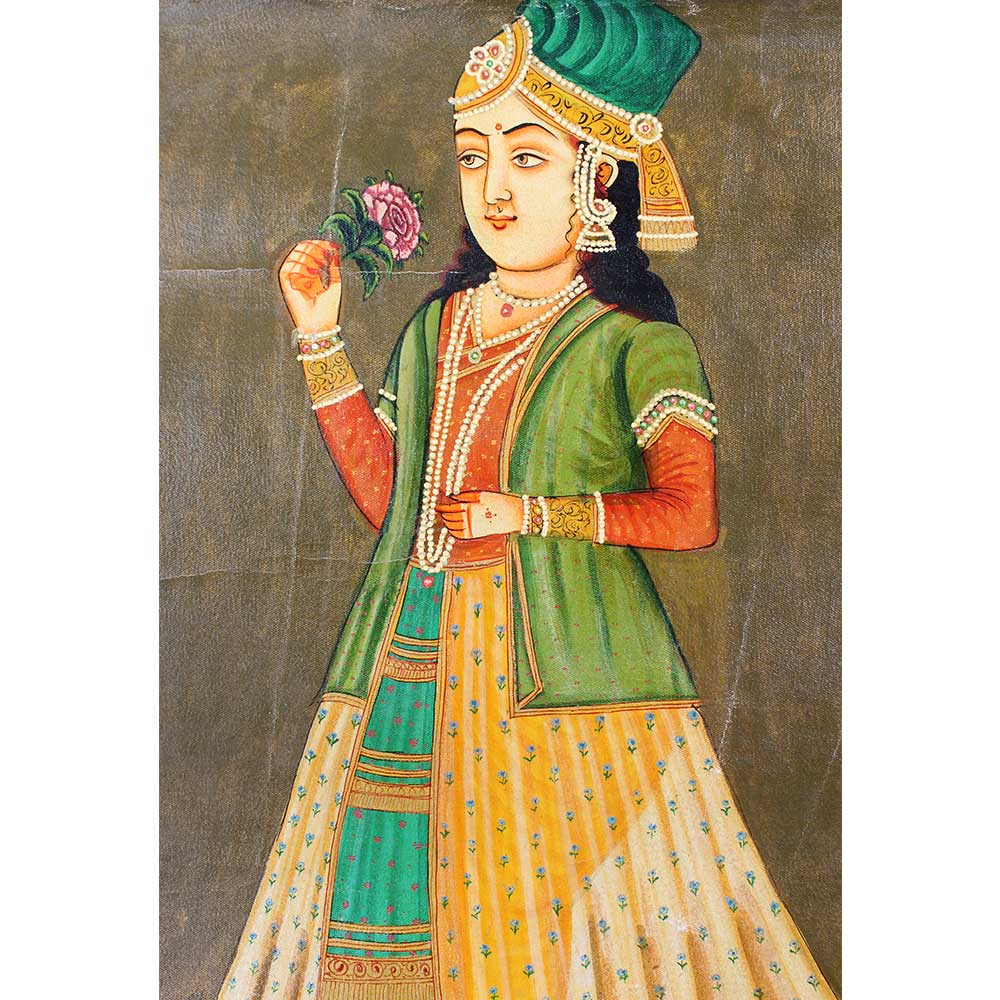 • Mughal Painting Depicting a Noblewoman Holding a Flower
