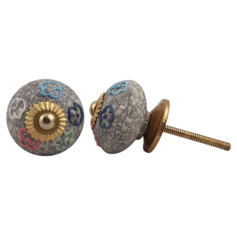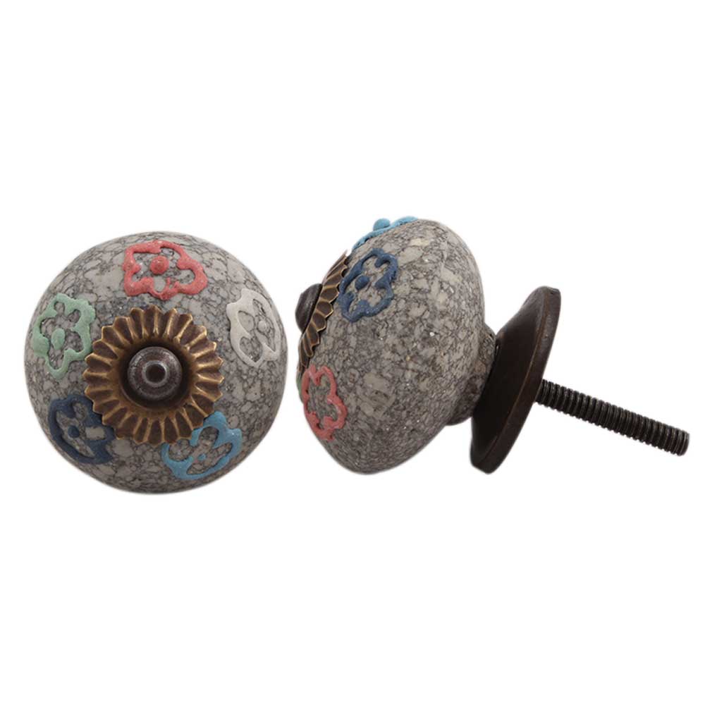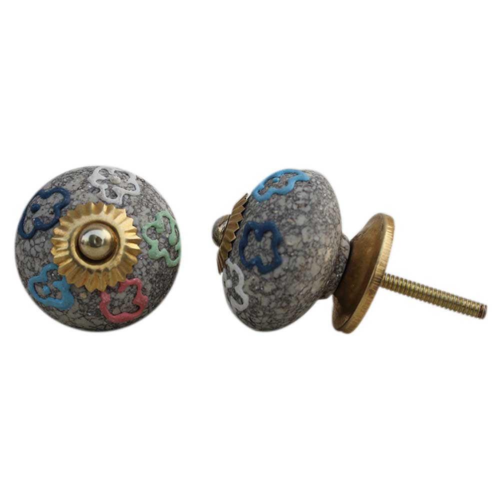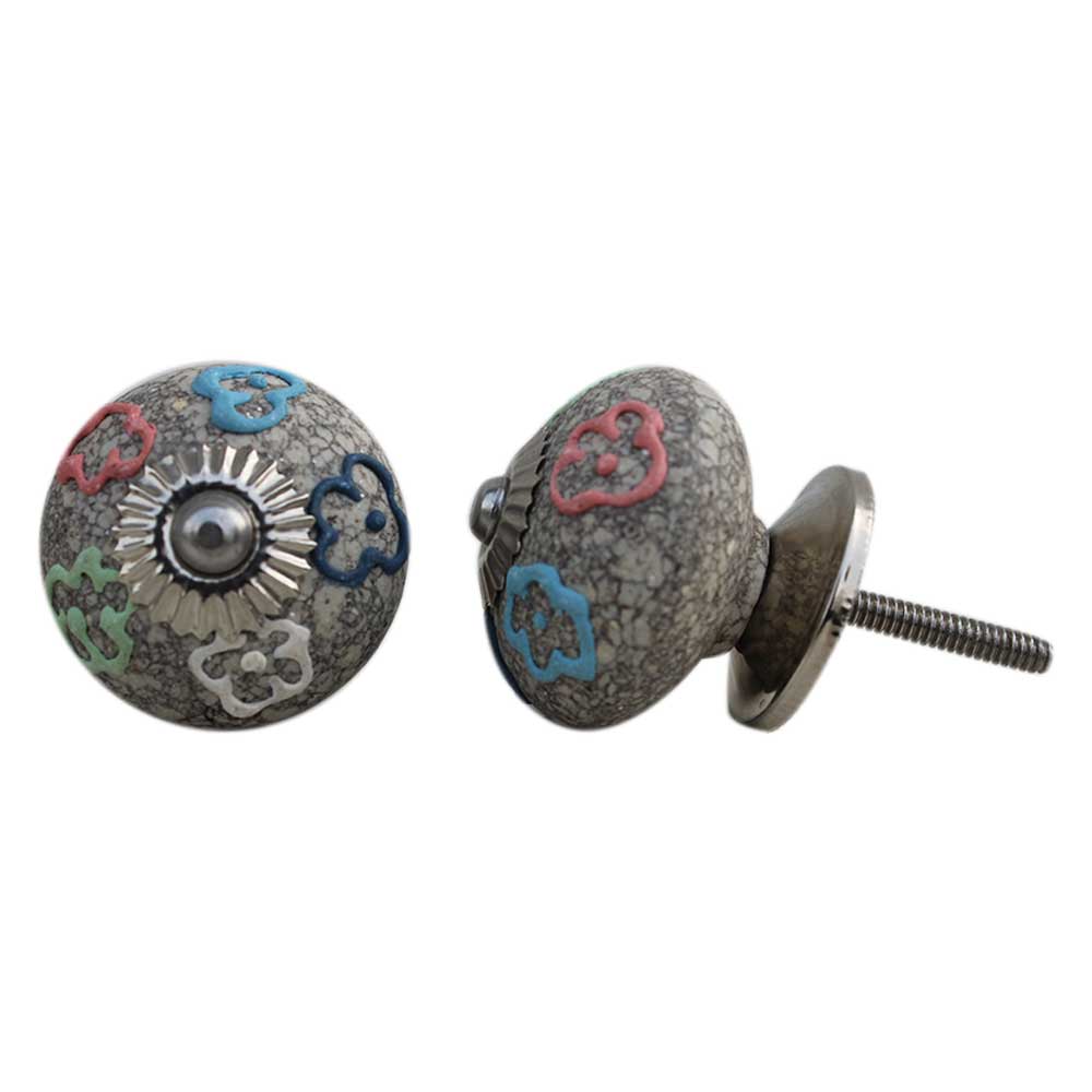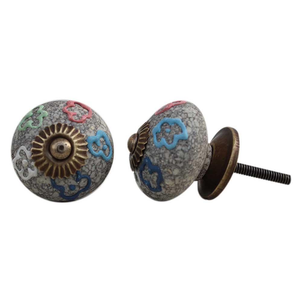 Multi Colored Floral Crackle Ceramic Drawer Knob