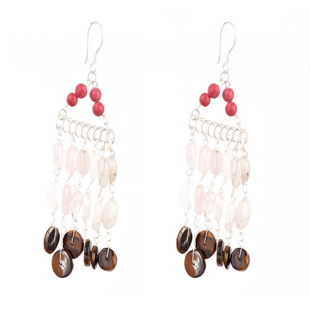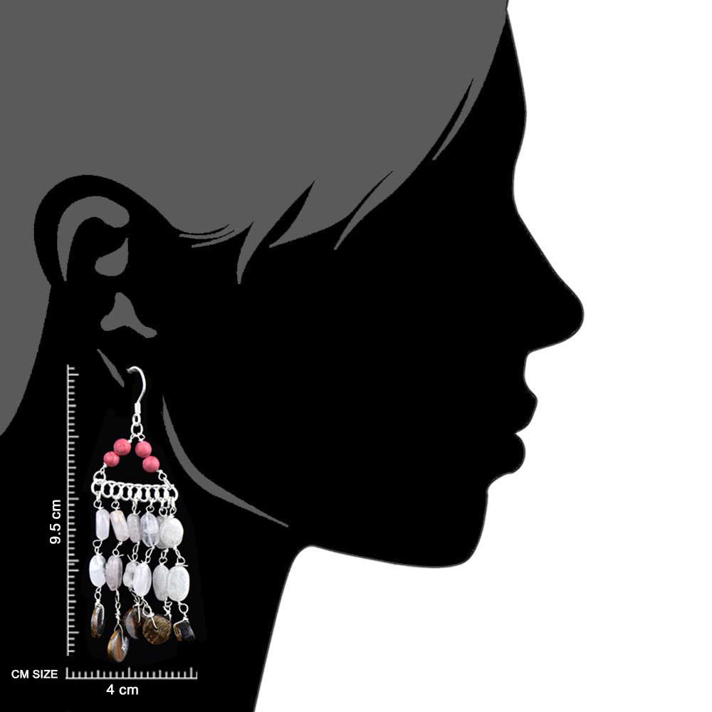 Light weight comfortable sterling silver earrings with beads in white, brown and red colored seed beads with long silver chain danglers. Daily wear, office wear, casual wear, party wear, Diwali gift, anniversary gift, birthday gift for your near and dear ones.