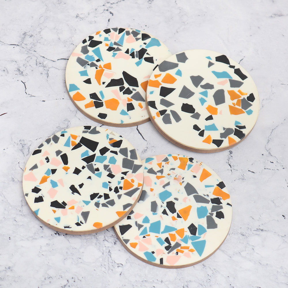 Buy a Pack of four wooden tea coasters online from our website which are meticulously crafted from high-quality wood by highly talented Indian artisans. These coasters boast a unique circular shape, accentuated by vibrant, multi-coloured engravings on a pristine white background. They effortlessly combine functionality and elegance, making them an ideal decorative piece for your home or office. Designed to hold water, tea, juice, or coffee glasses, these coasters are perfect for protecting surfaces from unwanted stains. Whether you\'re sipping a soothing cup of tea in the comfort of your home, conducting a meeting in the office, or enjoying a delightful meal at a restaurant, hotel, or cafe, these coasters will add a touch of sophistication to your table setting. In addition to their practicality, these wooden coaster sets also make exceptional gifts for your loved fours on special or festive occasions.