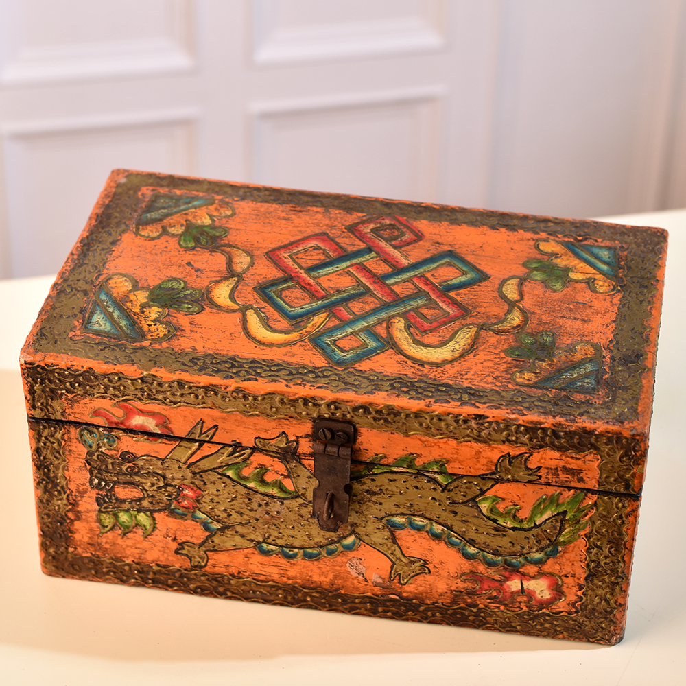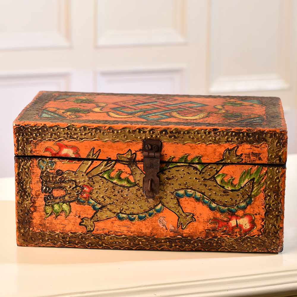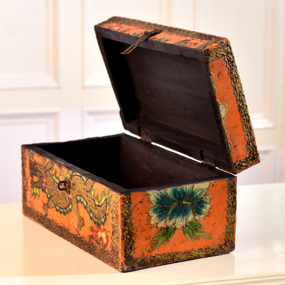 Buy a Rectangular Wooden Jewelry Box online from our website and get a hassle free delivery right at your doorstep. Crafted with precision by highly talented Indian artisans, this box is designed for those who appreciate the beauty of fine craftsmanship. The rectangular shape provides ample space to store your precious jewelry or small items securely, while the sturdy latch ensures they remain protected. What sets this jewelry box apart is its stunning multi-colour finish, adding a vibrant touch to any space. The meticulously engraved dragon and flower motifs showcase the skilled artistry that goes into every piece. This box is not just a storage solution, it's a piece of art that enhances the aesthetic of your home, office, cafe, restaurant, or hotel. Versatile and eye-catching, our wooden box is not confined to personal use. It makes a captivating display at exhibitions, captivating the audience with its intricate detailing. Consider it as a thoughtful and timeless gift for your loved ones on special, festive, or auspicious occasions, making every moment memorable.