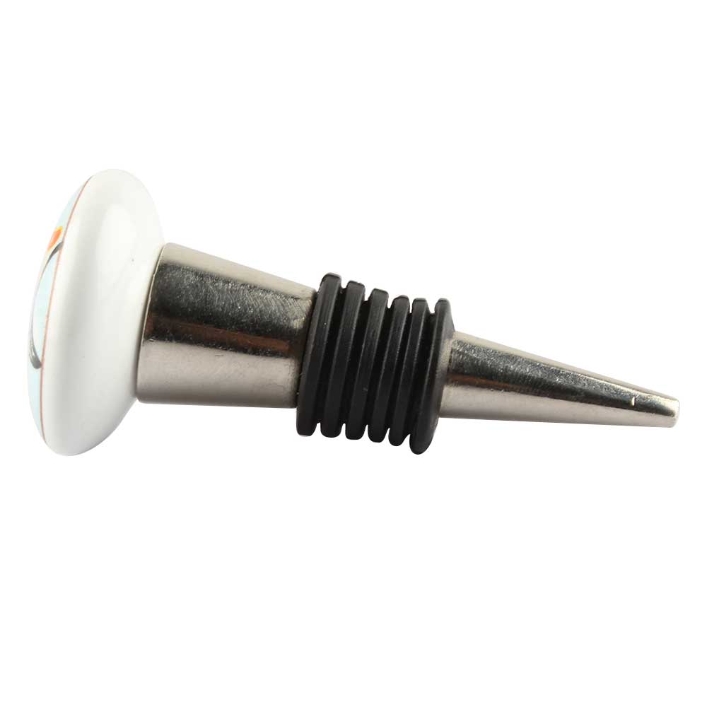 Multicolor Bird Ceramic Wine Stopper Online. Zinc Alloy Wine Bottle Stopper with Attractive Jute Bag Packaging.