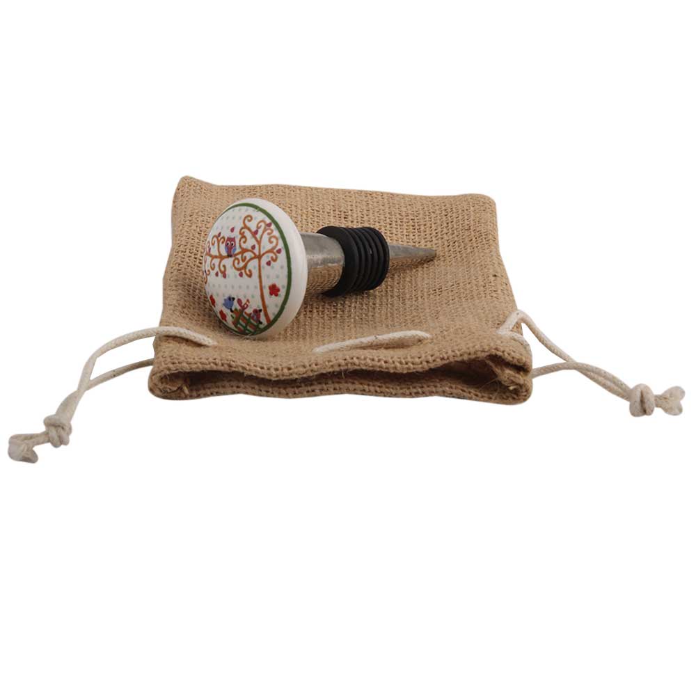 Multicolor Birds Flat Ceramic Wine Stopper.zinc alloy wine bottle stopper with attractive Jute Bag Packaging.