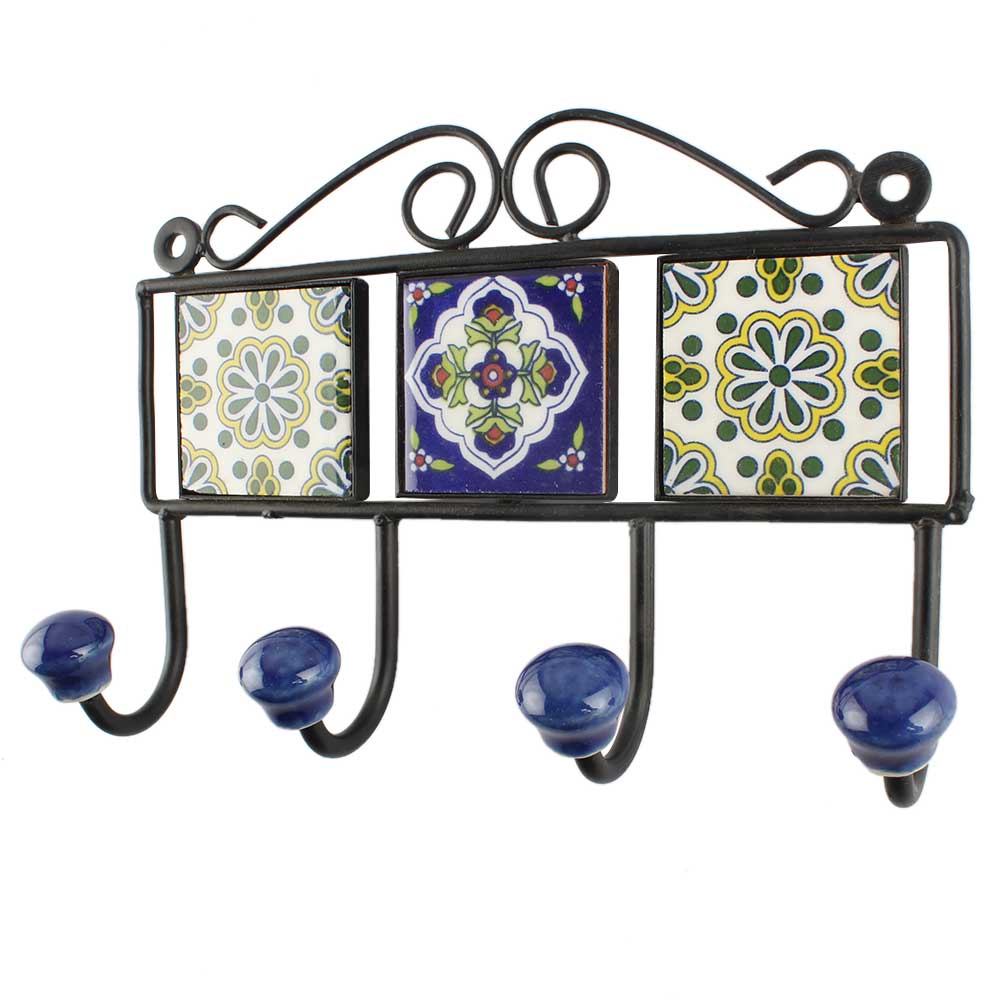 Multicolor Ceramic Floral Tile Hook. When Put on Wall or Cabinet It is An Art in Itself. The Metal Part of this Hook is Black Powder Coated.