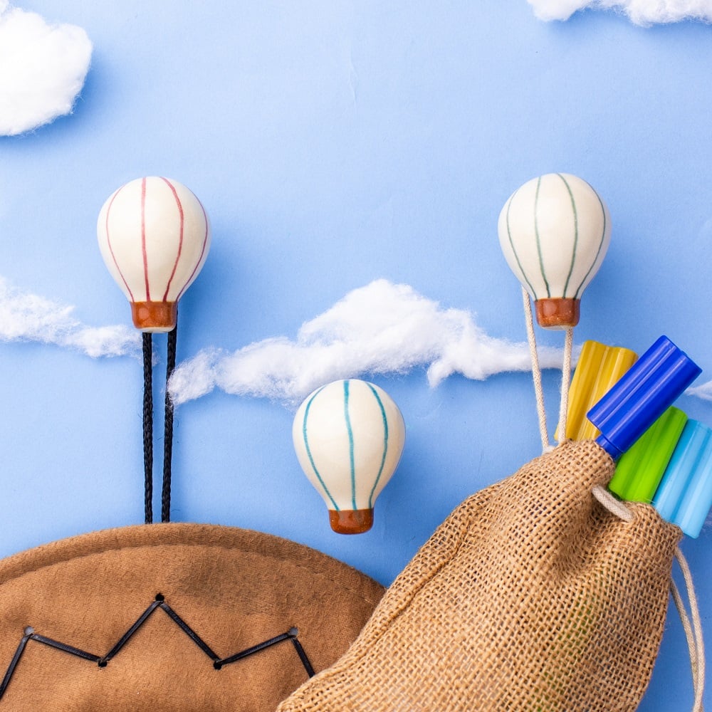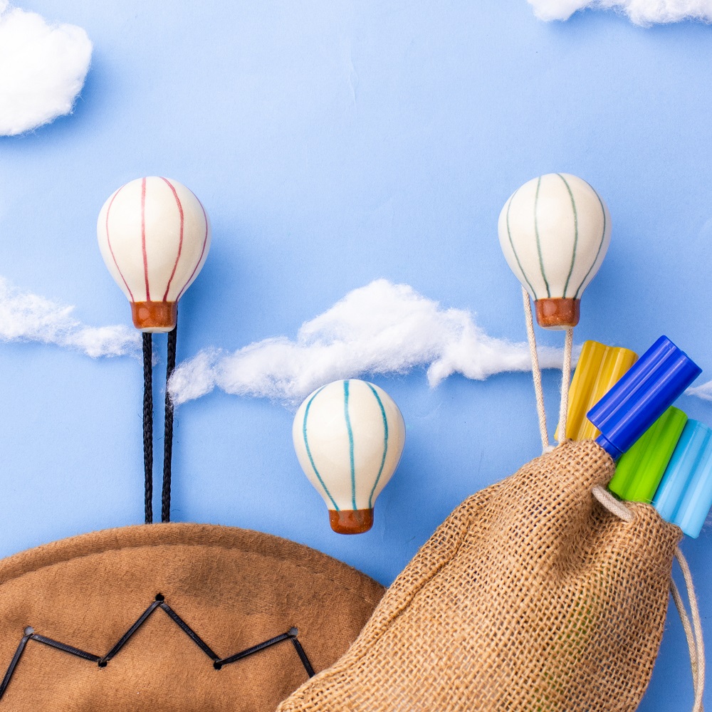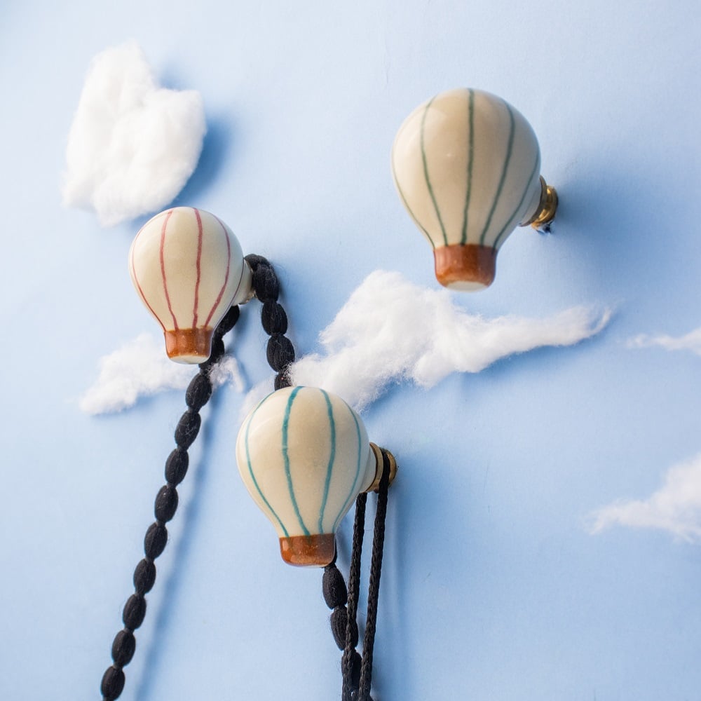 • Multicolor Ceramic Hot Air Balloon Modern Kids Wall Hook-3 Pieces