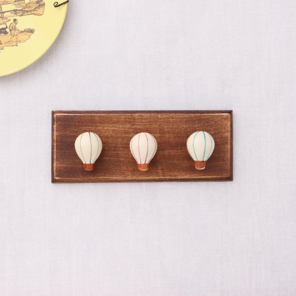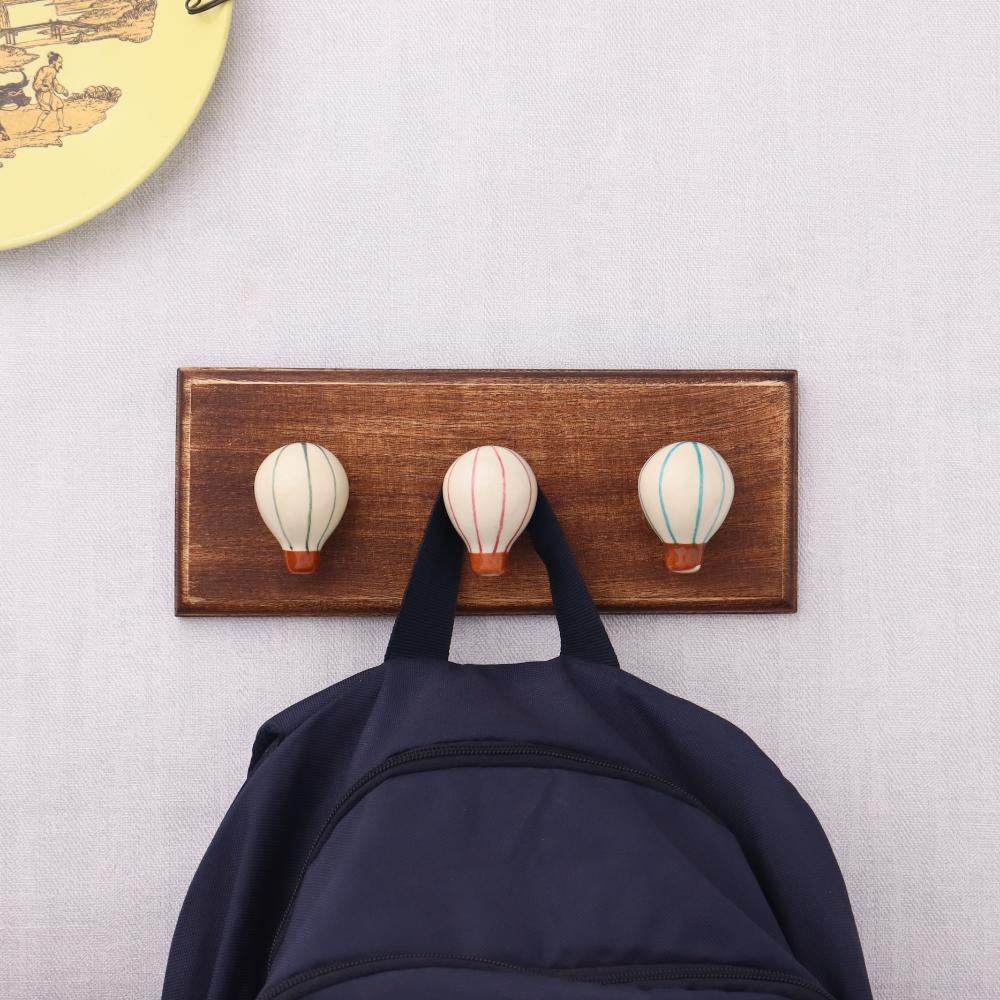 • Multicolor Ceramic Hot Air Balloon Modern Kids Wooden Wall Hook
