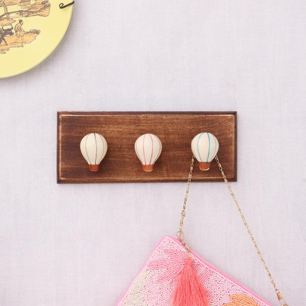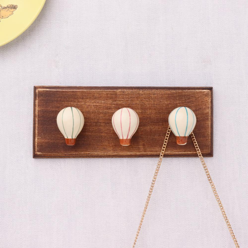 Multicolor Ceramic Hot Air Balloon Modern Kids Wooden Wall Hook. It can be use to Hang Jewellery, Leashes, Towels, Scarves, Light Weight Sweaters, Caps Etc.
