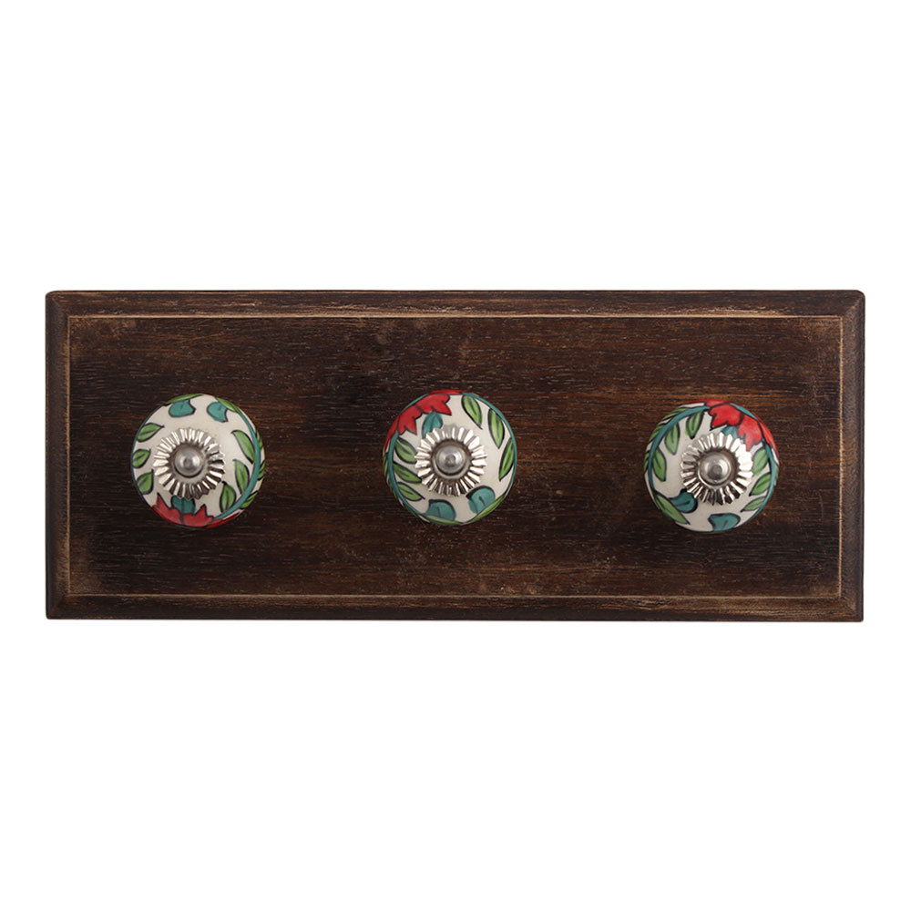 Multicolor Ceramic Wooden Hook. A Perfect Complement to the Soft Tone of the Wood are these White Traditional Hat Coat Hook Made of Genuine Porcelain and Brass. It can be use to Hang Jewellery, Leashes, Towels, Scarves, Light Weight Sweaters, Caps Etc.
