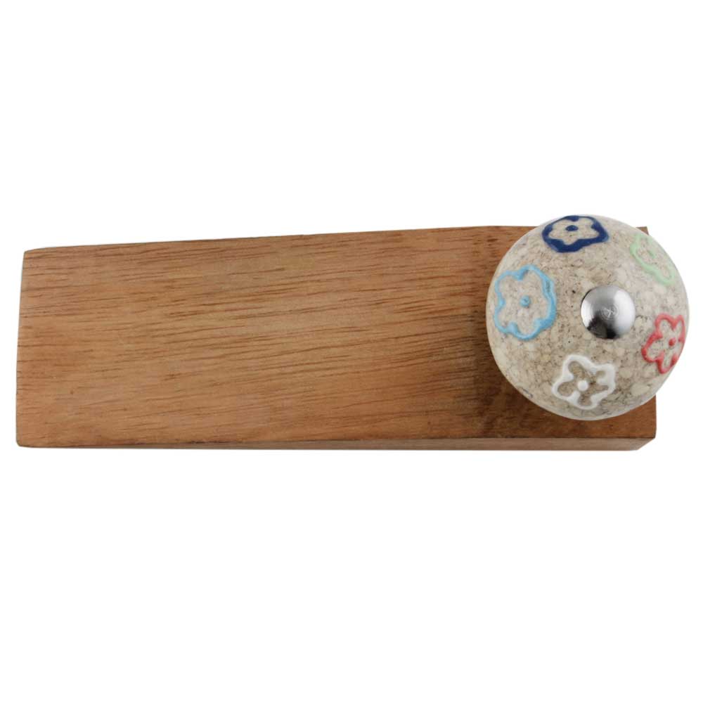 Handmade Ceramic and Wooden Door Stopper.Wooden Door Stopper with a Ceramic Knob to Carry it Easily. This Wooden Door Stopper has Glue Dots under it to Ensure that it does not Slip. It is Handmade by the Craftsmen of India and this Innovative Door Stopper won't Disappoint You.