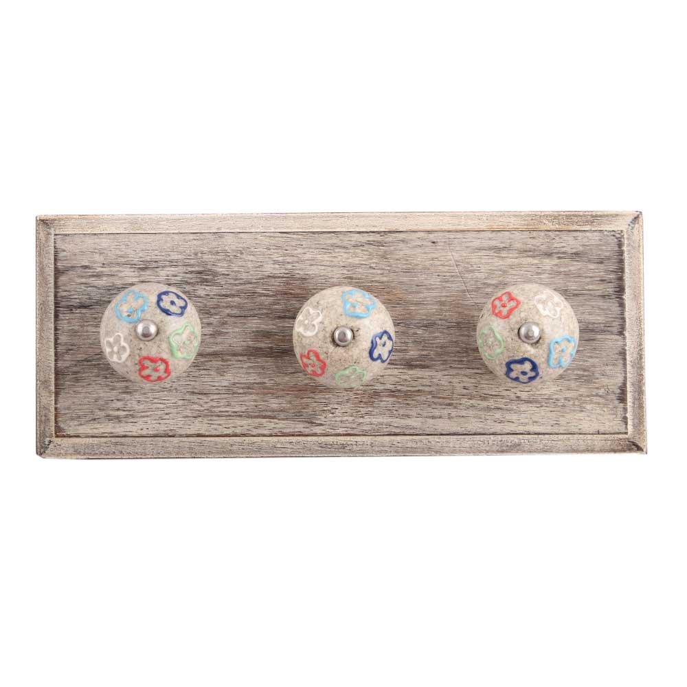 Multicolor Crackle Ceramic Wooden Hook. A Perfect Complement to the Soft Tone of the Wood are these White Traditional Hat Coat Hook Made of Genuine Porcelain and Brass. It can be use to Hang Jewellery, Leashes, Towels, Scarves, Light Weight Sweaters, Caps Etc.