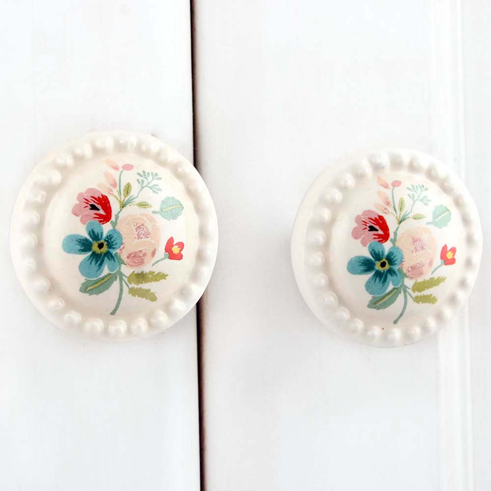 Multicolor Cream Flower Flat Knob