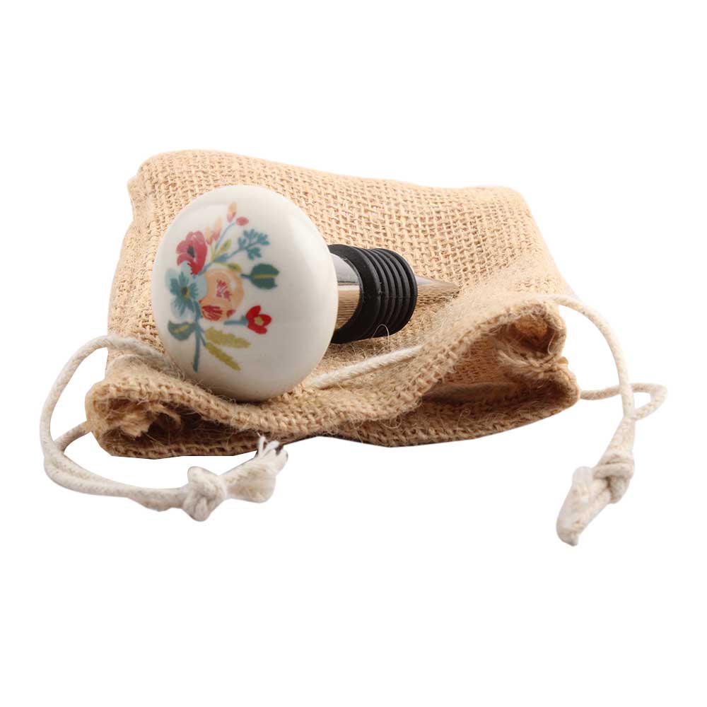 Multicolor Flower Ceramic Wine Stopper.zinc alloy wine bottle stopper with attractive Jute Bag Packaging.