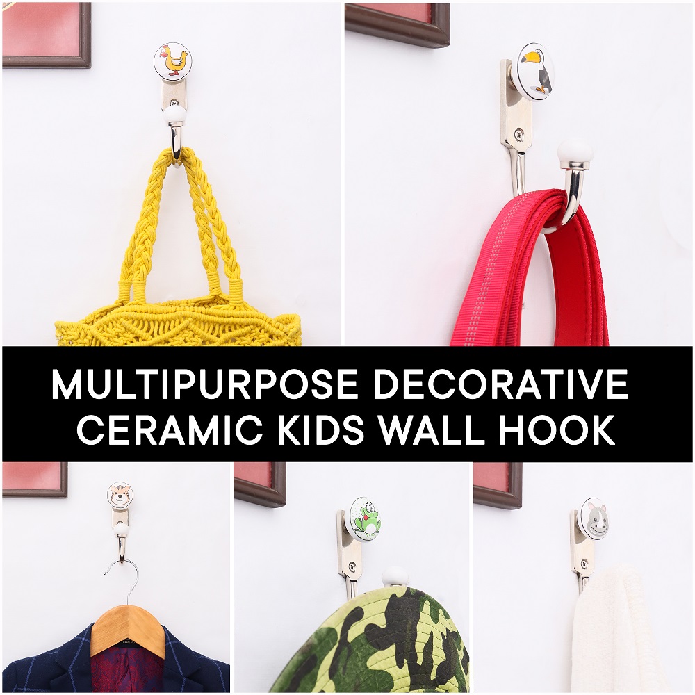 • Multicolor Handmade Ceramic Animals Kids Wall Hooks-Pack of 6