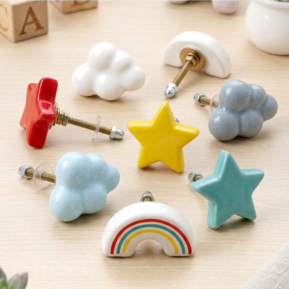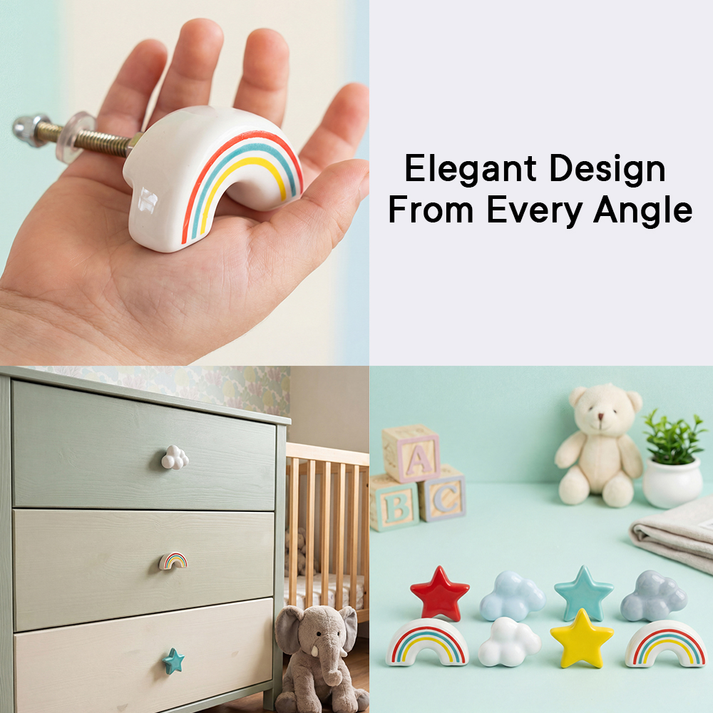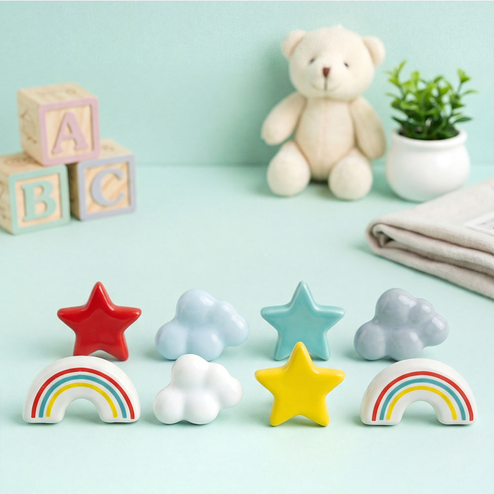 • Multicolor Kids Theme Star,Cloud and Rainbow Ceramic Drawer Knobs