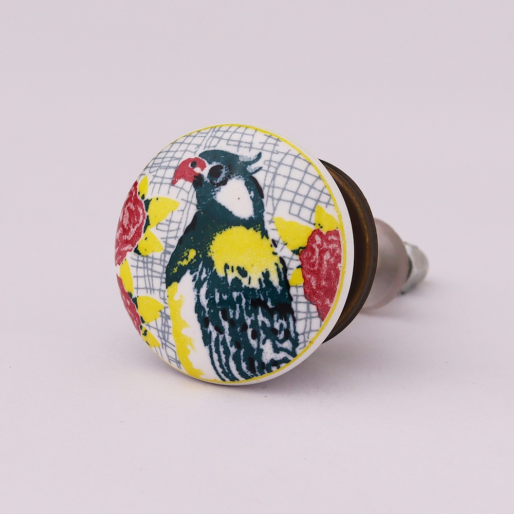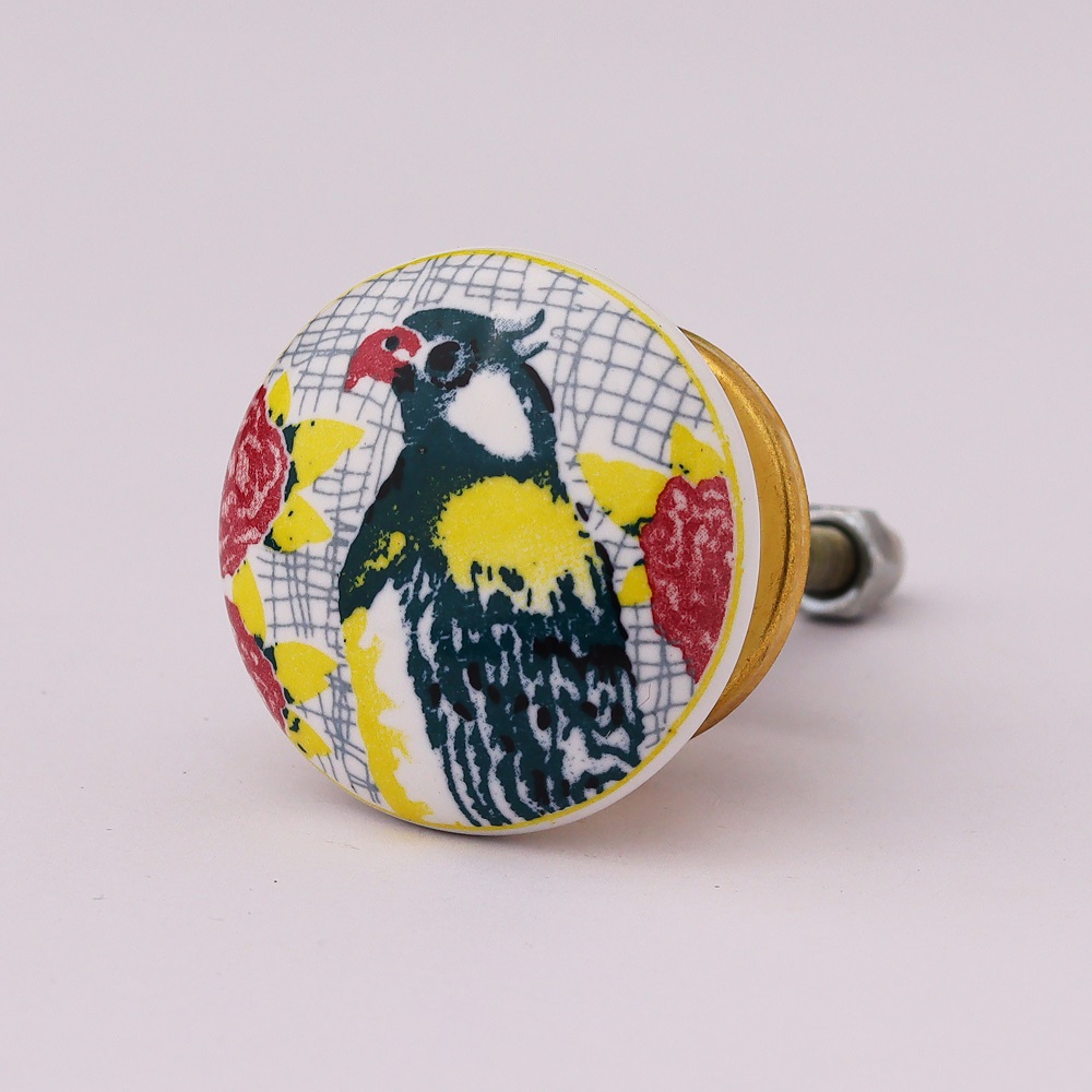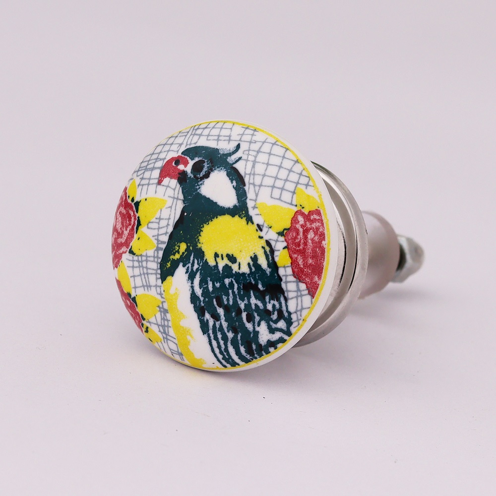 Multicolor Parrot Flat Ceramic Cabinet Knob