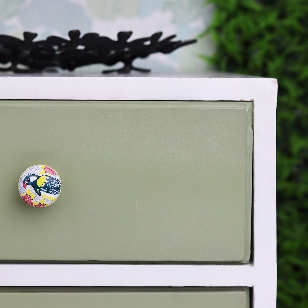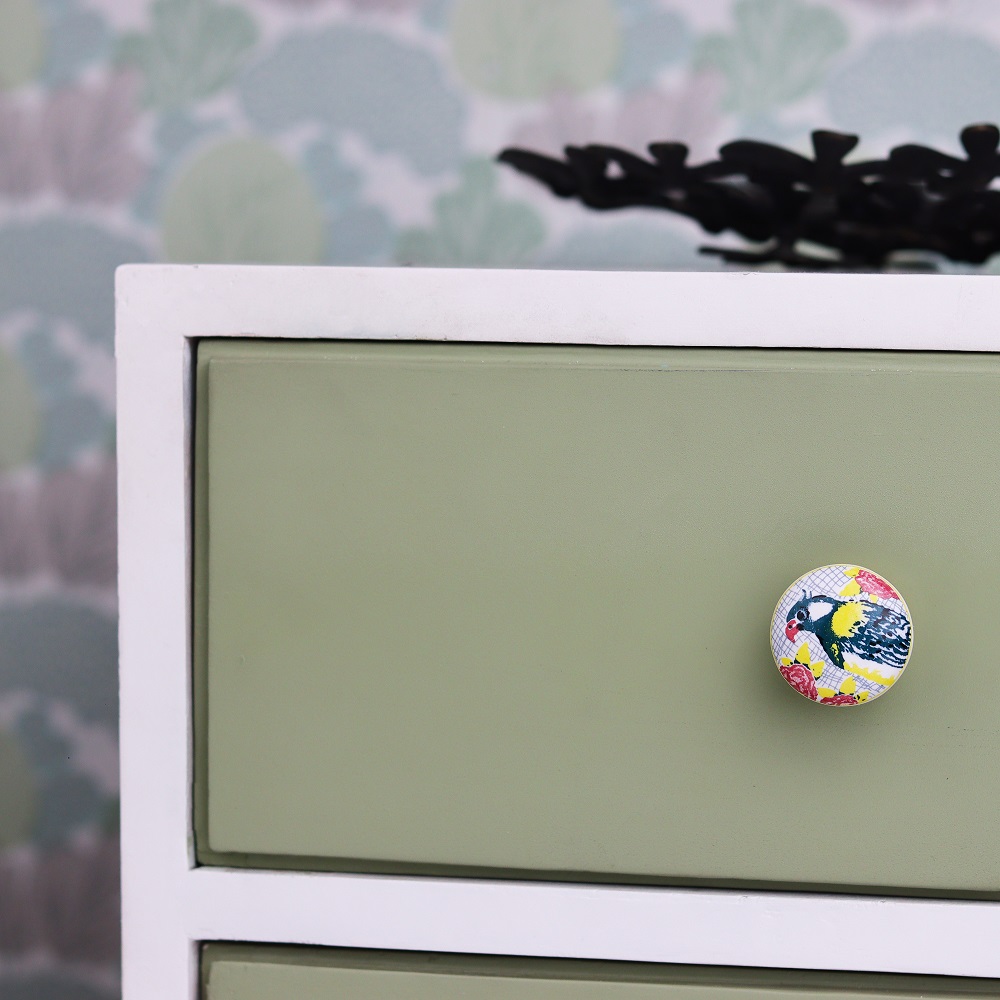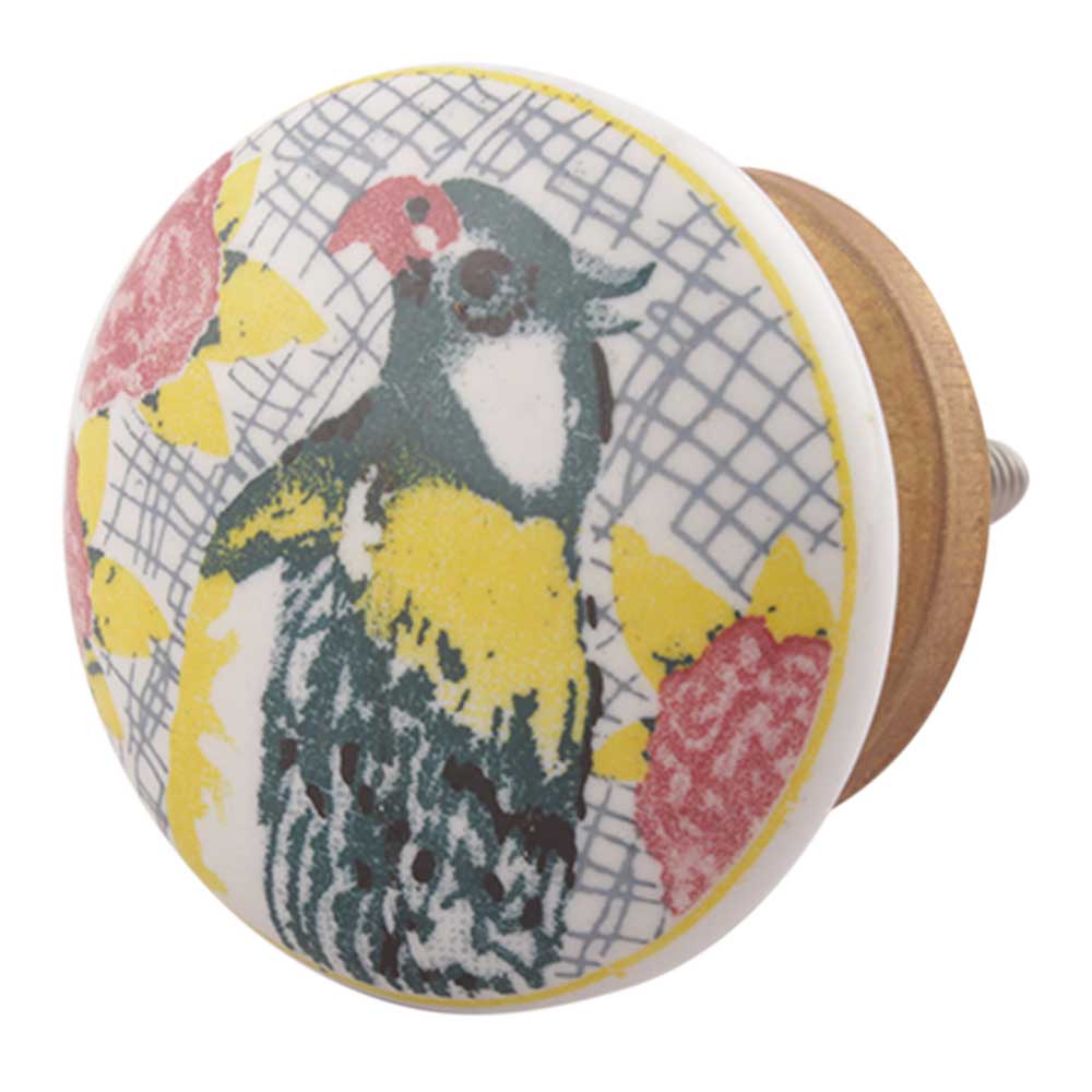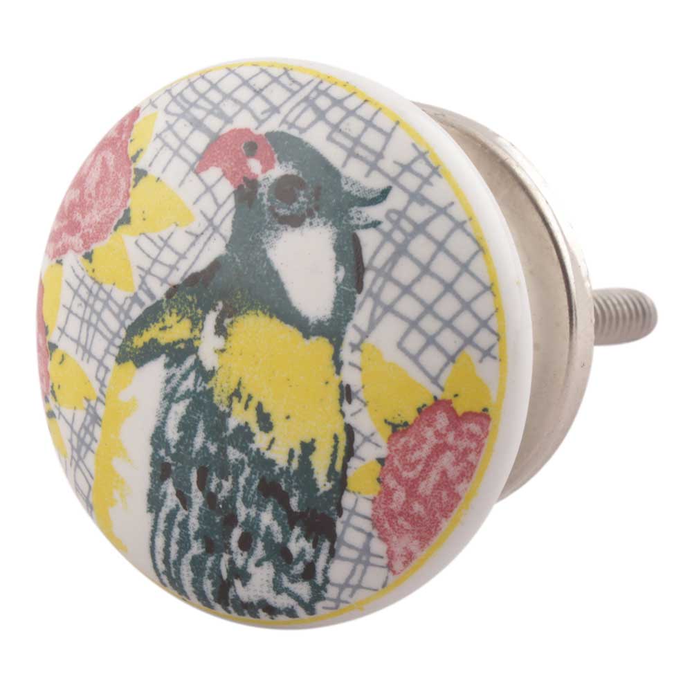 Multicolor Parrot Flat Ceramic Cabinet Knob