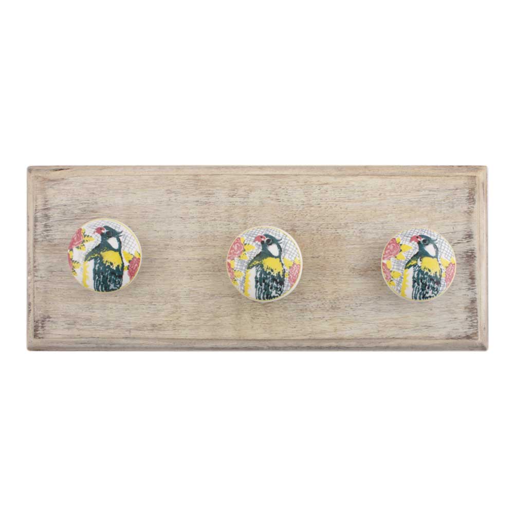 Multicolor Parrot Flat Ceramic Wooden Hooks