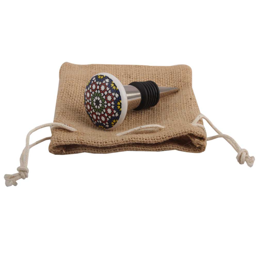 Multicolor Star Ceramic Flat Wine Stopper.zinc alloy wine bottle stopper with attractive Jute Bag Packaging.
