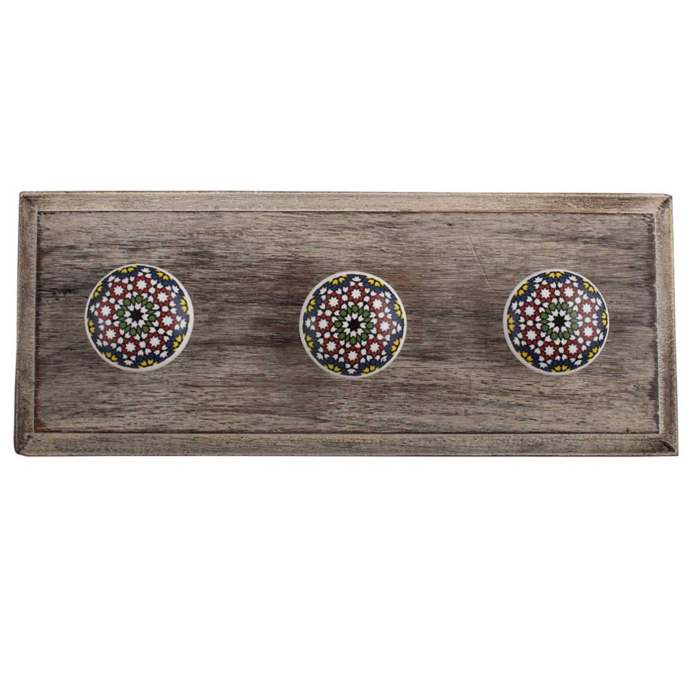 Multicolor Star Ceramic Wooden Hook. A Perfect Complement to the Soft Tone of the Wood are these White Traditional Hat & Coat Hook Made of Genuine Porcelain and Brass. It can be use to Hang Jewellery, Leashes, Towels, Scarves, Light Weight Sweaters, Caps Etc.