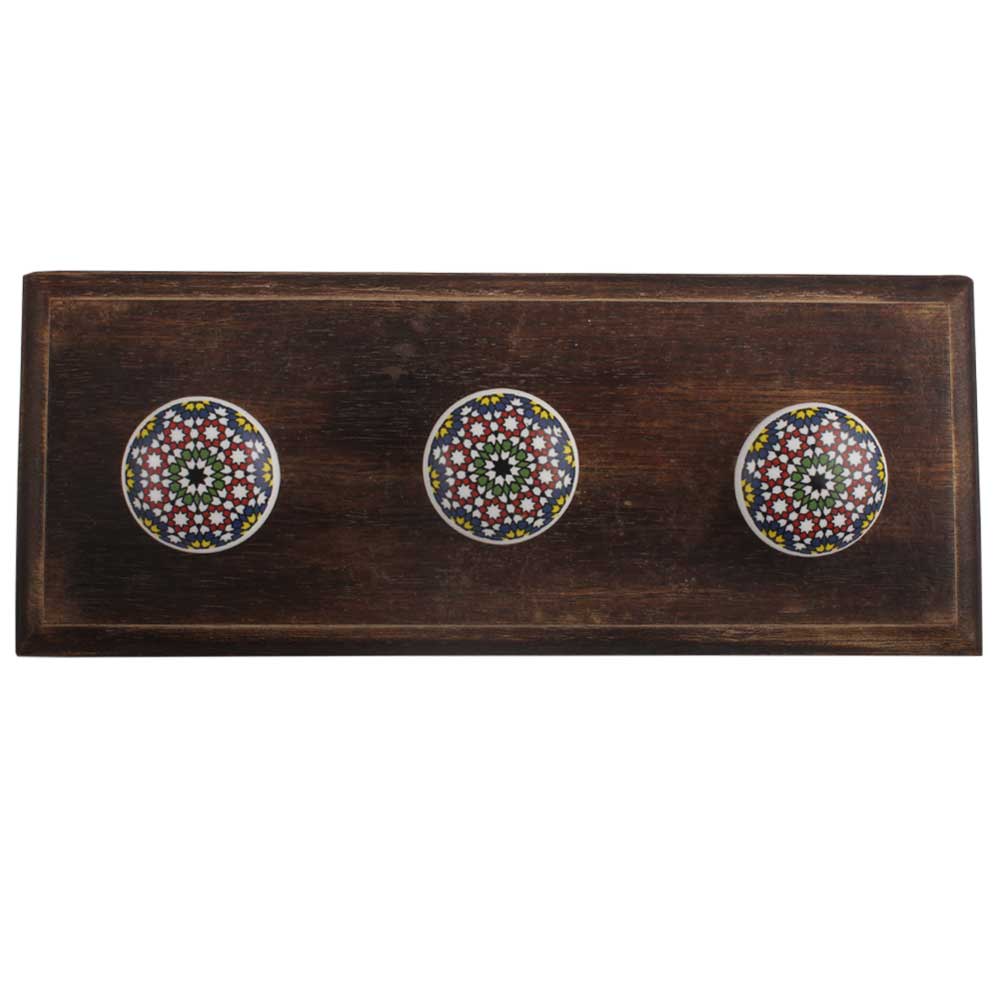 Multicolor Star Ceramic Wooden Hook. A Perfect Complement to the Soft Tone of the Wood are these White Traditional Hat & Coat Hook Made of Genuine Porcelain and Brass. It can be use to Hang Jewellery, Leashes, Towels, Scarves, Light Weight Sweaters, Caps Etc.